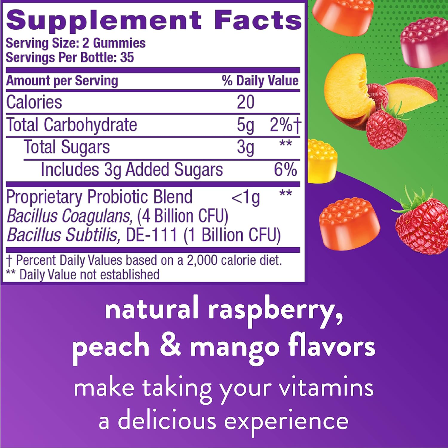 Contains 5 billion CFUs and two probiotic strains per serving that provide friendly bacteria to the digestive tract with delicious, natural fruit flavors (1)