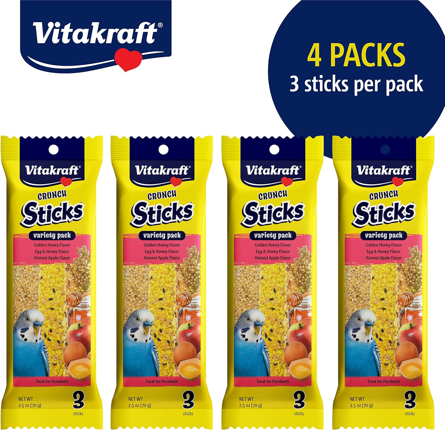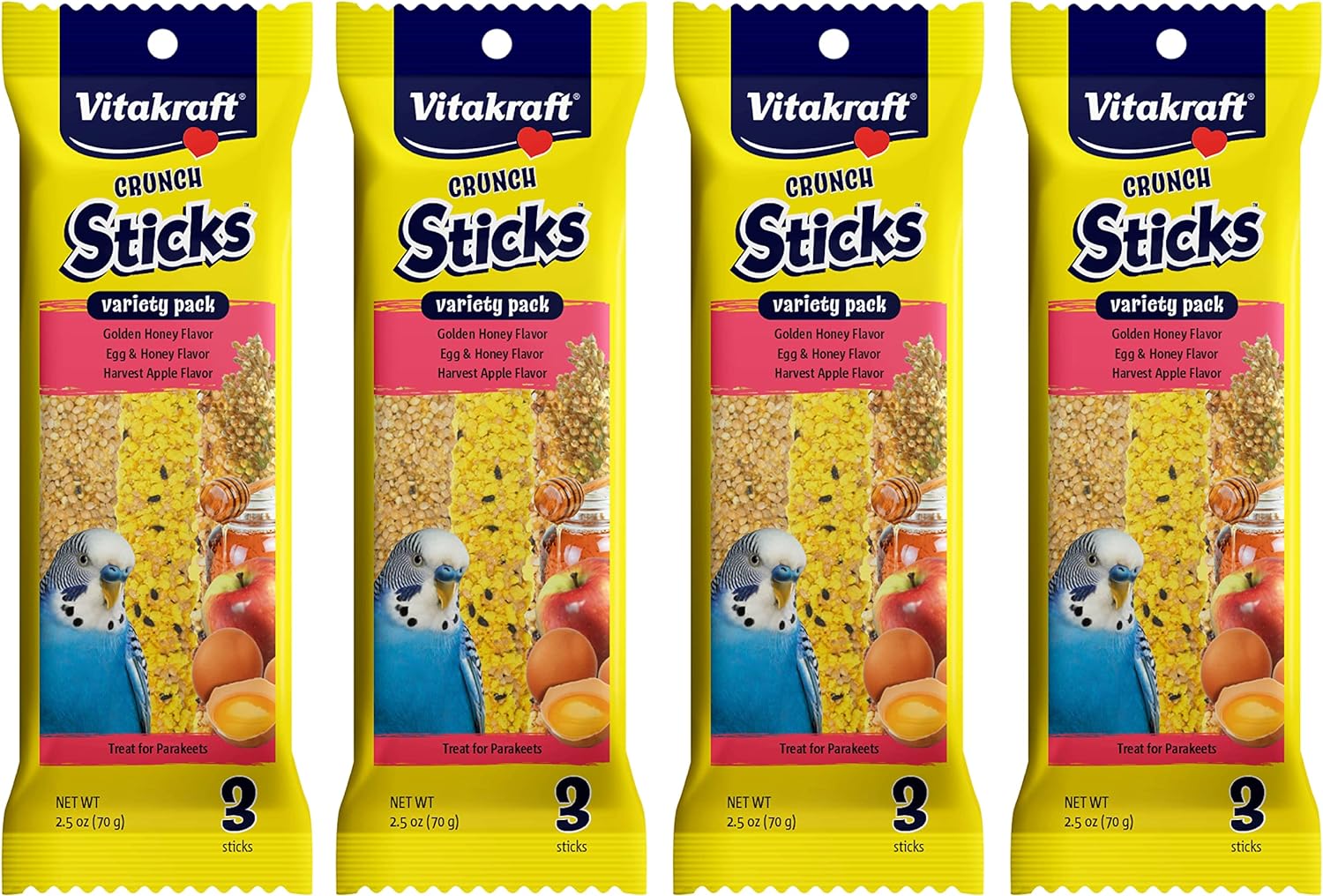 Vitakraft Crunch Sticks Parakeet Treat - Honey, Egg, And Apple- Pet Bird Treat Toy - Multi Variety Pack Of 12 Sticks…