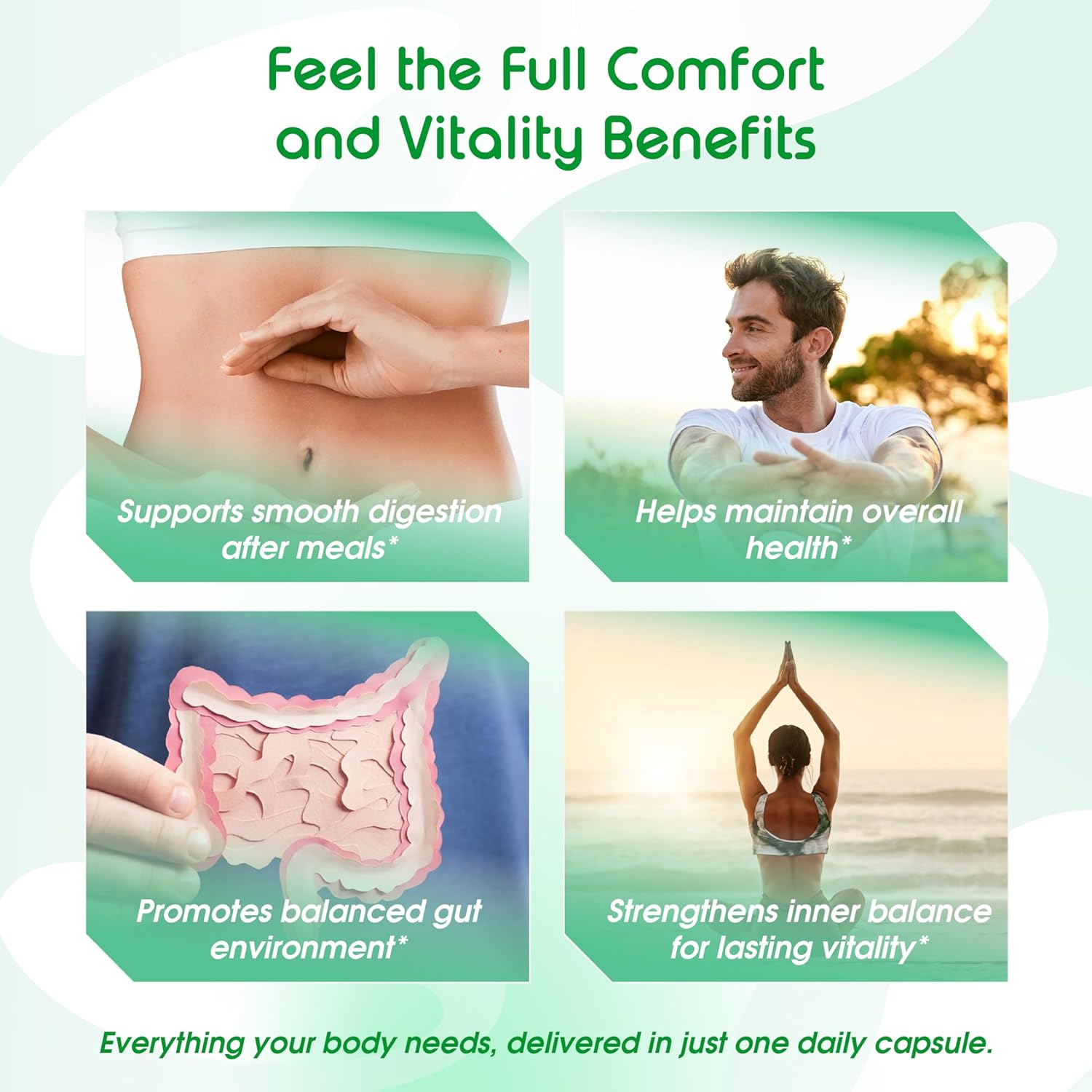 DIGESTIVE COMFORT SUPPORT: Our blend with enhanced ingredient synergy helps ease occasional bloating, promotes regularity, and supports gentle digestion, so you can feel light, comfortable, and ready to enjoy each day