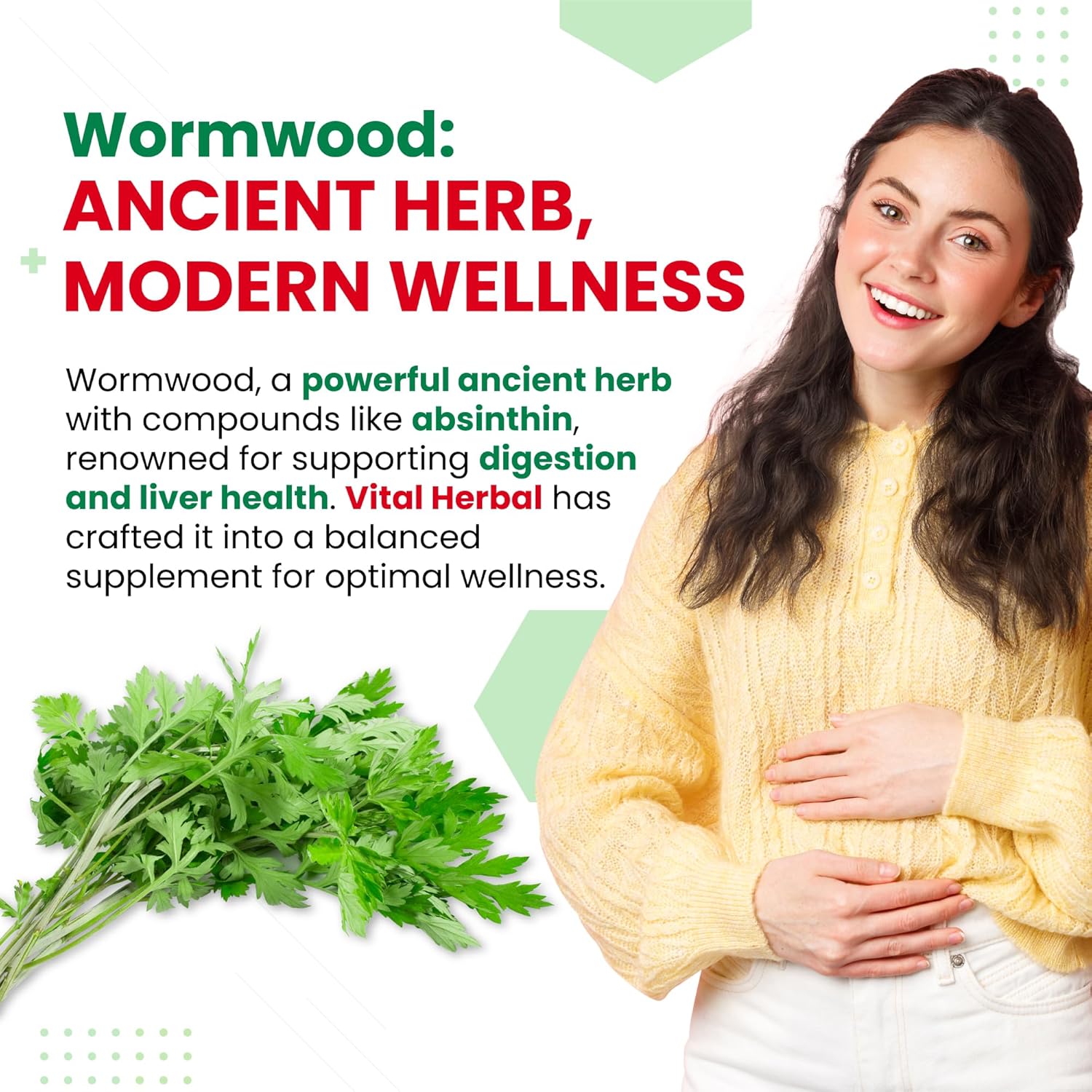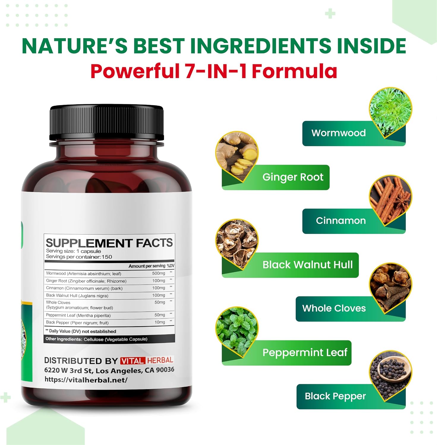 Powerful Potency: Vital Herbal Wormwood Supplement contains 150 capsules per bottle, offering a generous 5-month supply that ensures you can consistently support your wellness journey