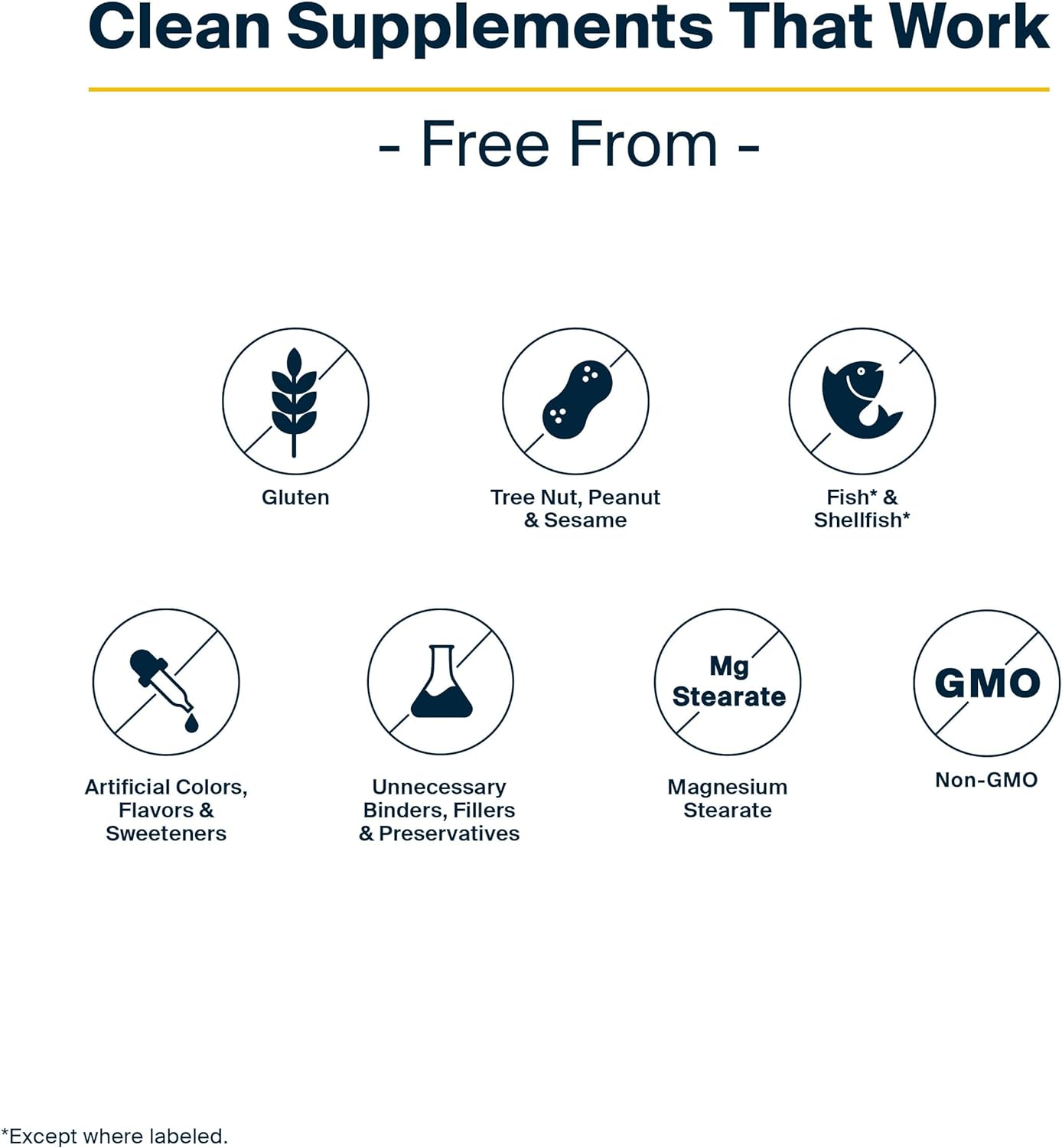 Clean Vegan Formula: Free From Gluten, Dairy, Peanut, Tree Nut, Fish, Shellfish, Soy, Sesame, And Egg Non-Gmo Made Without Artificial Fillers, Coatings, Binders, Or Colors