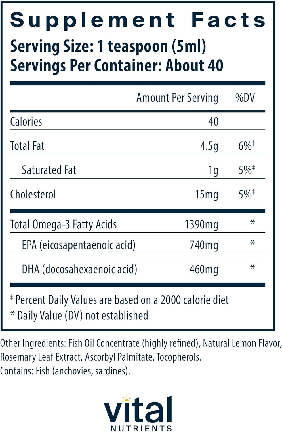 Vital Nutrients - Ultra Pure Fish Oil 1400 (Pharmaceutical Grade) - Deep Sea Liquid Fish Oil, Cardiovascular Support, Natural Lemon Flavor - 200 Ml Per Bottle