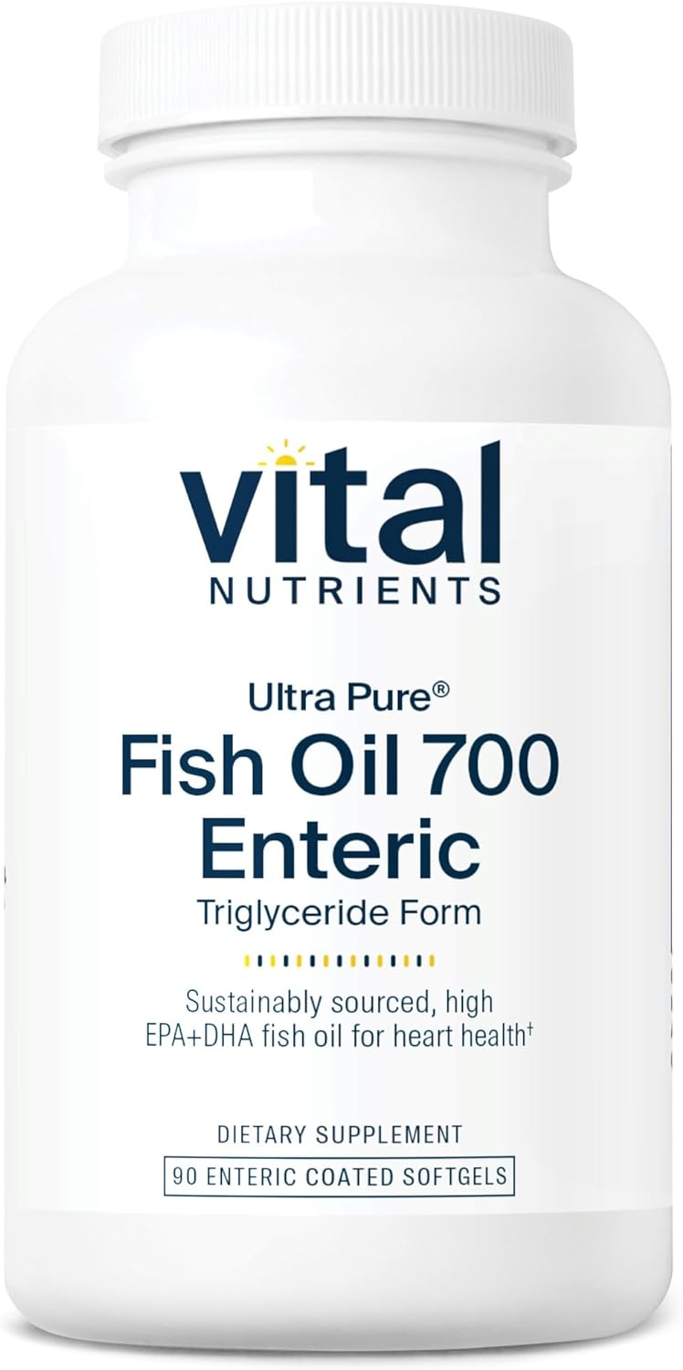 DESCRIPTION : Vital Nutrients - Ultra Pure Fish Oil 700 Enteric (Pharmaceutical Grade Triglyceride Form) - Hi-Potency Wild Caught Deep Sea Fish Oil - 90 Enteric Coated Capsules per Bottle