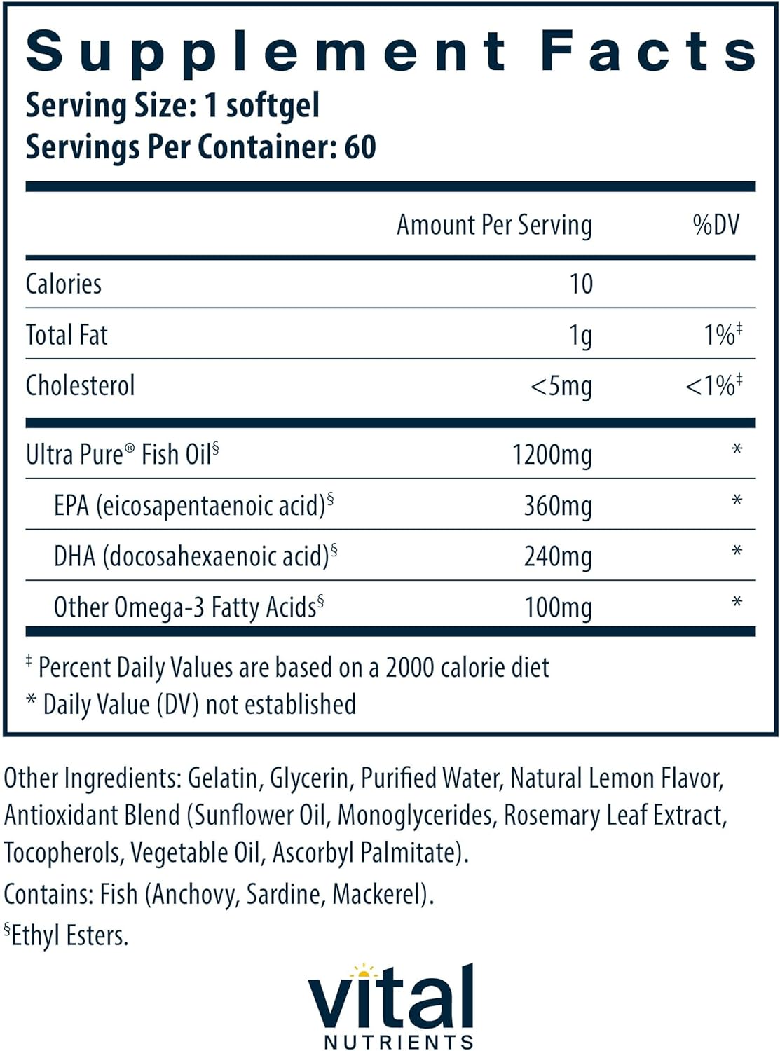 DESCRIPTION : Vital Nutrients - Ultra Pure Fish Oil 700 (Pharmaceutical Grade) - Hi-Potency Wild Caught Deep Sea Fish Oil, Cardiovascular Support with EPA and DHA - 60 Softgels60 Count (Pack of 1)