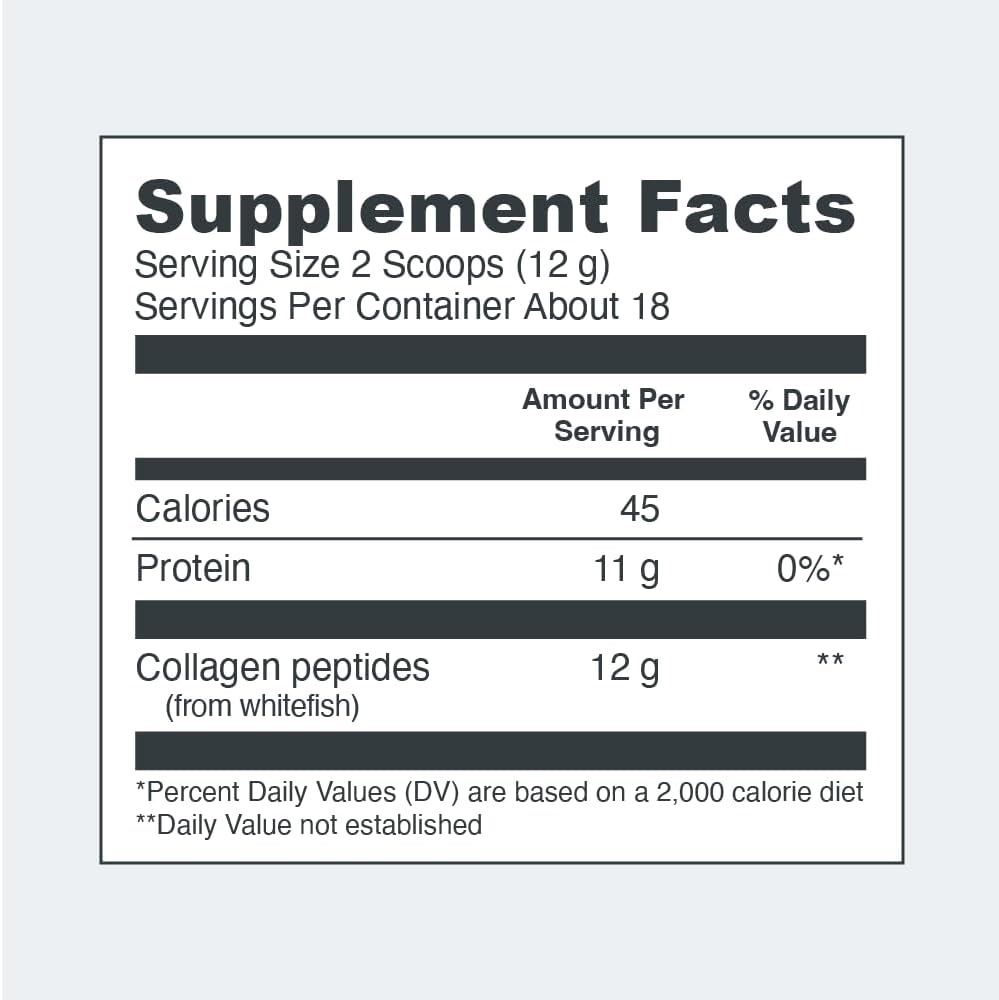 Bioavailable Collagen Peptides Powder ---- Our Marine Collagen is made from the scales of fresh, non-GMO, wild-caught white fish off the coast of Alaska. It’s highly bioavailable, digestible and soluble in cold waterHealth Beneficial ---- Marine collagen peptides can be digested and absorbed by the body quickly for maximum benefits. Helps improve the health of your hair, skin, nails, joints and ligaments, and tendons12g Collagen Powder per Serving ---- We provide a scoop to measure it, which 2 scoops of powder = 12g. That's also why the container isn’t full and just has to leave room for the scoop. And our product quantity based on weight, not canister size20g plant protein per serving including all 9 essential amino acids – Adding one serving of Plant Protein to your post-workout routine or daily nutrition so you can truly thrive. 1B CFU Probiotics support a healthy gut and ease digestionVegetarian – Made with plant-based diets in mind. Developed without dairy, gluten, or soy. No added sugar - made with a hint of stevia, Plant Protein contains 0g of added sugar per servingVital Proteins Marine Collagen Peptides Powder 7.8 oz Unflavored + 14 oz Unsweetened Plant Protein Powder