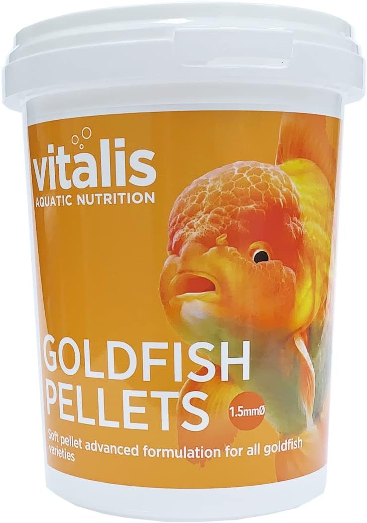 Product description ABOUT VITALIS What makes VITALIS so unique is the formula, the ingredients and the manufacturing process. Our fish feed is uniquely manufactured entirely in-house using bespoke machinery to meet the diverse nutritional needs of fish species from around the world. We have carefully selected our main fish feed ingredients, focusing on quality, nutritional value and sustainability. Our feed for fish is sourced with nutritional ingredients from responsible, registered suppliers. No genetically modified products are used. GOLDFISH PELLETS Our VITALIS GOLDFISH PELLETS are the perfect staple food for all goldfish and coldwater fish including Oranda, Shubunkin, Comet, Fantail and Common. Our goldfish fish food is healthy, easily digestible and extremely nutritious, and is characterized by its particularly high quality. NATURAL FEED EXPERIENCE The fish food pellets are designed to sink slowly in the water. In this way, the natural feeding experience of the fish can be promoted. Optimal for all types of goldfish and cold water fish. HIGH QUALITY The granular goldfish food is made from high quality ingredients, a blend of seaweed in a tailored balance of vitamins and minerals. Formulated and engineered to deliver complete, high quality nutrients. The natural pigments found in our coldwater fish food help support healthy coloring in your goldfish. Thus you promote the natural nutritional behavior of the fish and keep them healthy and active. HIGH QUALITY PRODUCTION The low temperature extrusion techniques we use result in a soft, digestible goldfish pellet fish food that is not denatured and therefore has a very high nutritional value. ONLY THE BEST FOR YOUR FISH Goldfish Pellet Indications all ages, fish, small and medium size P.when('A').execute(function(A) { A.on('a:expander:toggle_description:toggle:collapse', function(data) { window.scroll(0, data.expander.$expander[0].offsetTop-100); }); }); Directions Add Vitalis Goldfish Pellets to the fish tank, allowing the pellets to sink slowly for a natural feeding experience. See more,Vitalis Goldfish Pellets 1.5mm 260g Fish Food,Product tpe: PET FOOD,Brand: Vitalis Aquatic Nutrition,Size: 260 g Pack of 1