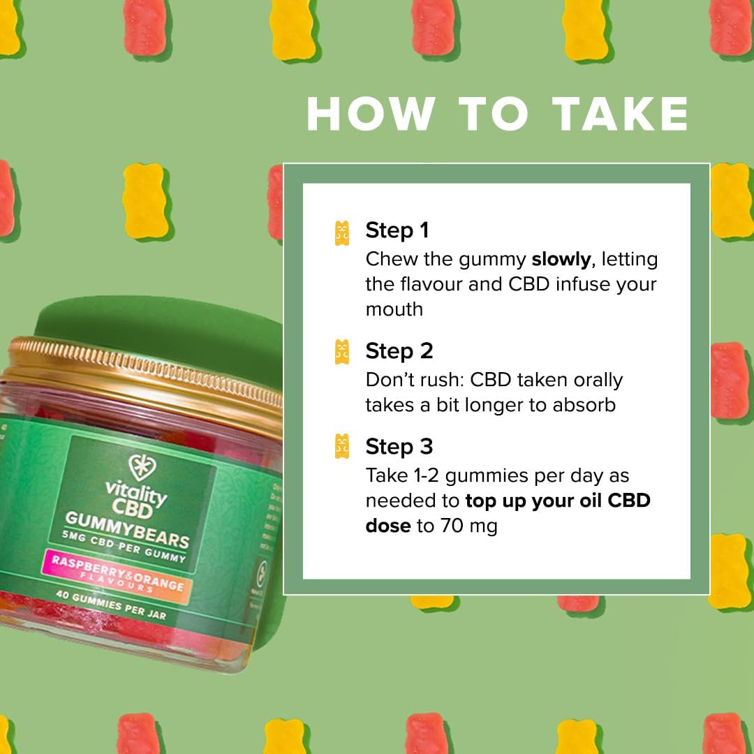 Vitality Cbd Gummy Bears, 5Mg Of Cannabidiol Per Gummy, 40 Gummies, Raspberry And Orange Flavours, No Thc