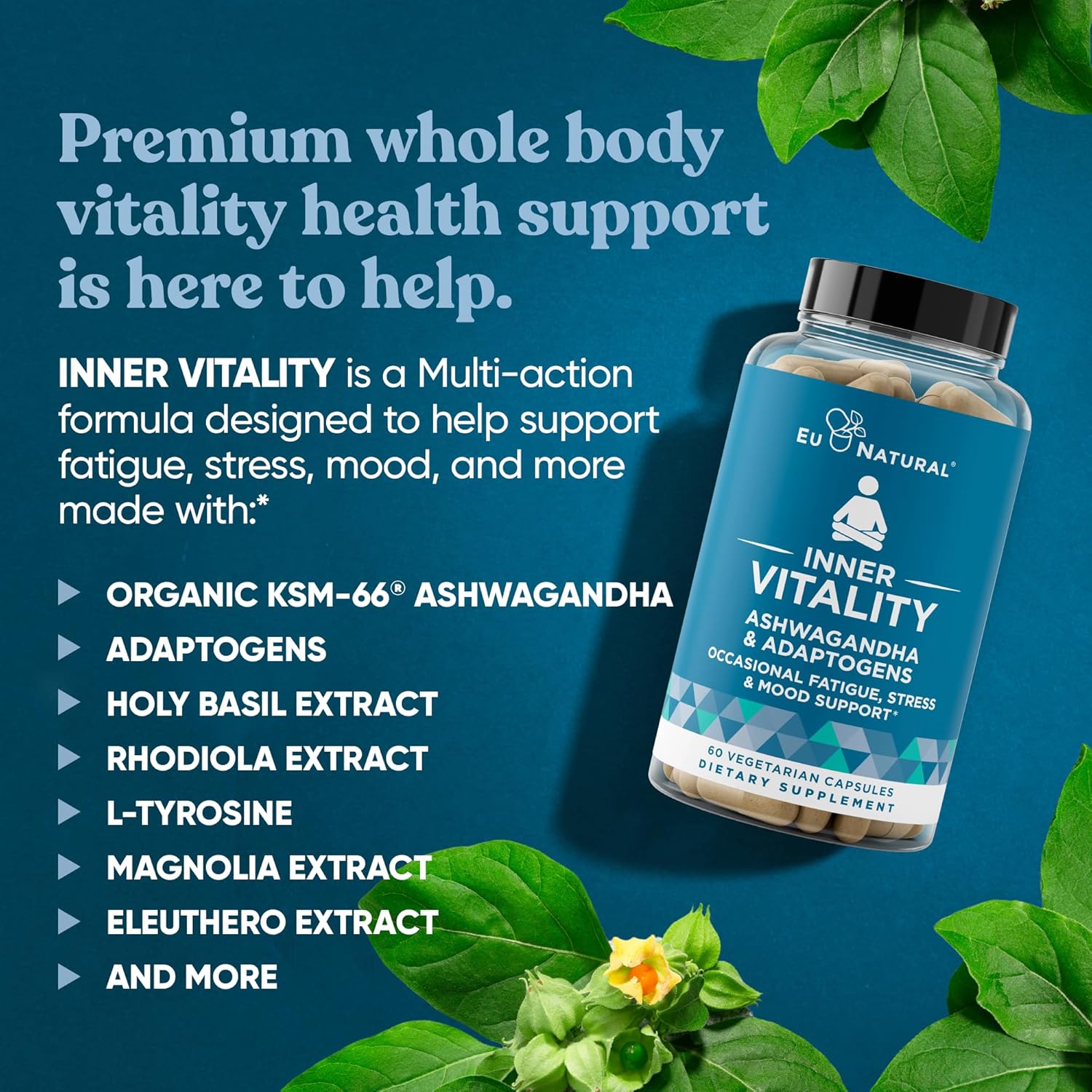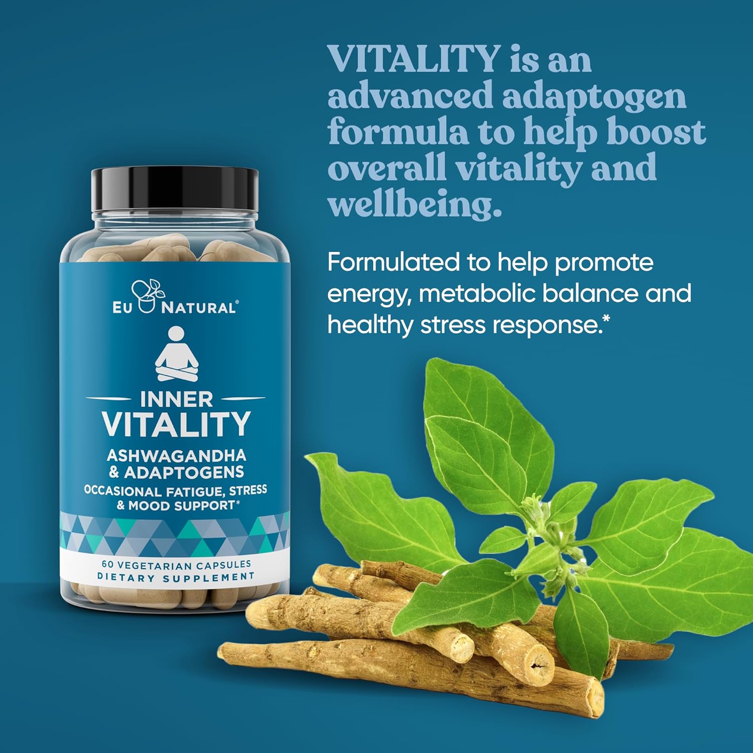 Vitality Cortisol Manager – Fight Fatigue, Feel Calm & Balanced – Healthy Cortisol, Focused Energy, Adrenal Support – Ashwagandha Supplement With Rhodiola, L-Tyrosine, Holy Basil – 60 Veg Capsules