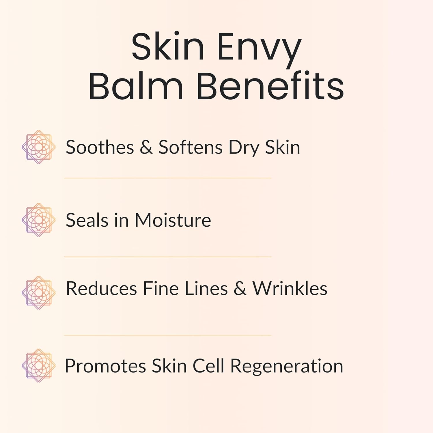 About this item Botanical oils and Beeswax, what more could you ask for! These ultra-moisturizing and healing ingredients create the perfect balm to heal and hydrate. Fractionated Coconut Oil: Rich in fatty acids, polyphenols and Vitamin E, Coconut Oil helps to hydrate and rujevenate skin, reducing fine lines for a healthier complexion Powerful Essential Oils: Frankincense, Myrrh and Sandalwood Essential Oils help to cleanse skin and soothe redness Skin Envy Body Balm: Olive Oil, Almond Oil, Beeswax, Tocopherol, Frankincense, Fractionated Coconut Oil, Vanilla, Myrrh, Sandalwood Clean Ingredients: Cruelty-Free, Non-Toxic, No Parabens, No Sulfates, No Synthetics, No Toxins, No Fillers, No mixers See more product details,Botanical oils and Beeswax, what more could you ask for! These ultra-moisturizing and healing ingredients create the perfect balm to heal and hydrate,Fractionated Coconut Oil: Rich in fatty acids, polyphenols and Vitamin E, Coconut Oil helps to hydrate and rujevenate skin, reducing fine lines for a healthier complexion,Powerful Essential Oils: Frankincense, Myrrh and Sandalwood Essential Oils help to cleanse skin and soothe redness,Skin Envy Body Balm: Olive Oil, Almond Oil, Beeswax, Tocopherol, Frankincense, Fractionated Coconut Oil, Vanilla, Myrrh, Sandalwood,Clean Ingredients: Cruelty-Free, Non-Toxic, No Parabens, No Sulfates, No Synthetics, No Toxins, No Fillers, No mixers