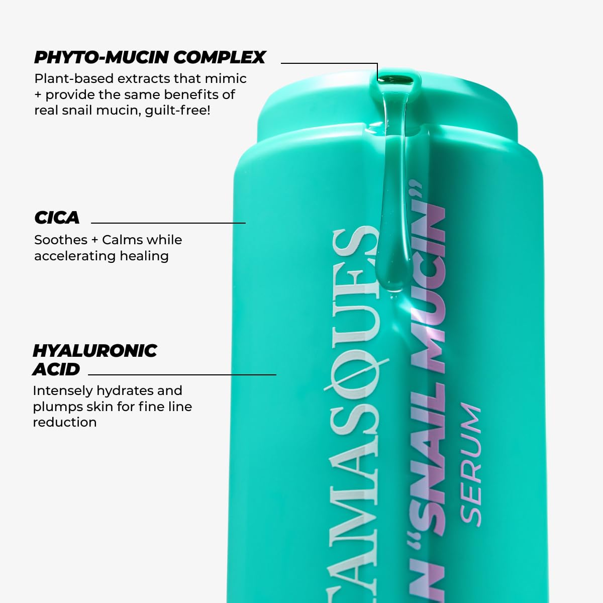 EASY TO USE PUMP - Vitamasques Vegan Snail Mucin comes in a unique twist bottom pump design allowing for easy use and a mess free close without needing to wipe away any access as well as protecting the seruym from oxidisation and contamination