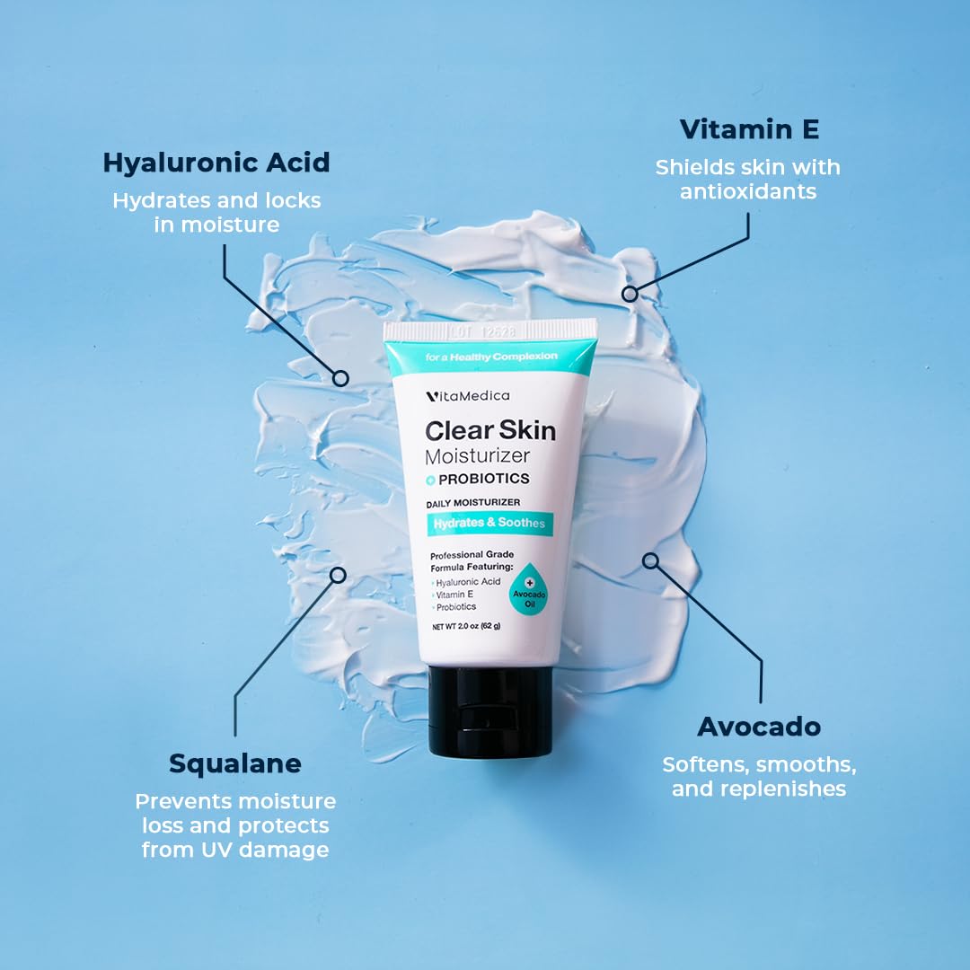 Vitamedica Clear Skin Probiotic Moisturizer | Water-Based Gel Cream | Hyaluronic Acid & Squalane