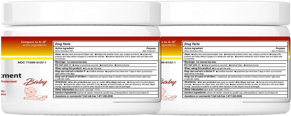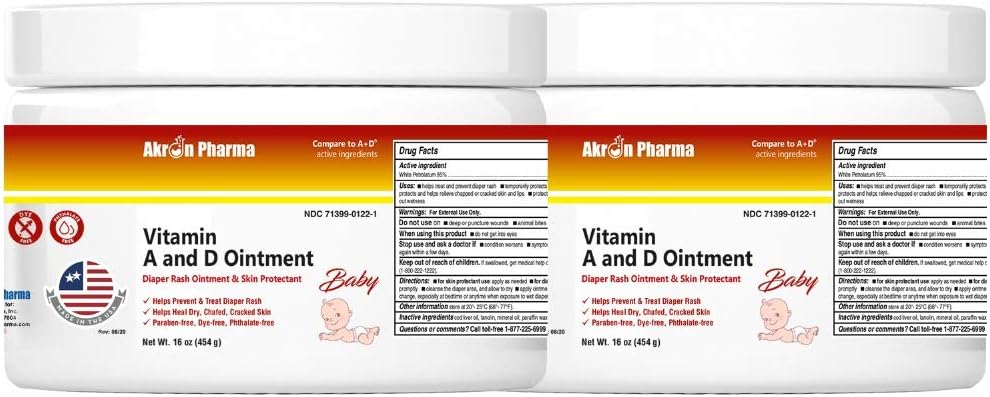 Vitamin A and D Ointment, Diaper Rash Ointment and Skin Protectant, 1 LB Jar (2 Pack)