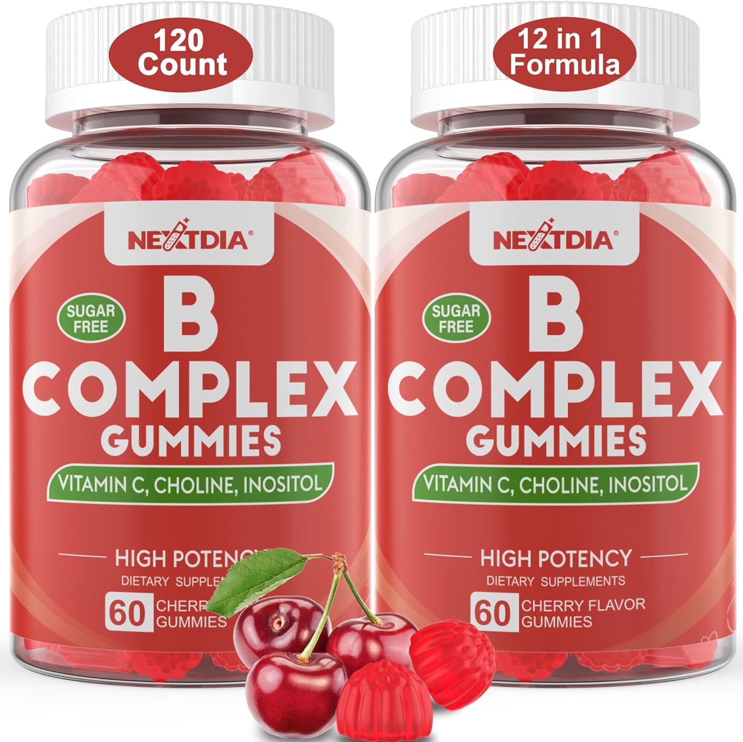 About this item Superior Potency Vitamin B Complex - Your body needs B-complex vitamins to function optimally. They supports functions such as energy production, metabolism, brain health, heart health and natural prenatal health. Our Nextdia’s formula delivers all 8 essential B vitamins B1, B2, B3, B5, B6, B7, B12 and folate. Also added vitamin C, zinc, choline and inositol, making it the most potent available gummies. Boost Energy & Relieve Mo?d - If you deal with a lot of work or have a busy life, then a potent B-complex is one of the most important supplements to take. They help turn carbohydrates into energy, break down fats and proteins, will improve your mood and enhance your focus without the crash of a cup of coffee! Get exactly what your body needs to conquer your days with full energy, clear mind, and high productivity! High Potency Methylated Vitamins B-Complex - Because B vitamins are water-soluble, the body is not very efficient at storing them for a long period of time, leaving you at risk for B Vitamin deficiencies. Nextdia’s gummies contain the full B-complex to support efficient methylation pathways for enhanced absorption and longer-lasting action. Also include Inositol and Choline, two relatives of the Vitamin B family that can aid with memory, motivation, focus, and overall cognition. Added Benefits - These B complex vitamin supplement gummies are also fortified with the additional blend of some Vitamin C + Zinc. Vitamin C a powerful antioxidant that helps collagen replenishment and elastin, while also helps scavenge damaging free radicals to support daily immunity. Zinc is an essential mineral that contributes to a robust immune system, may promote the formation of connective tissues for optimal skin health. Delicious Natural Cherry Flavor - Our B-vitamin gummies offer a delightful cherry taste. These convenient, easy-to-take vitamin gummies taste good and don’t require water. Keep your energy with just two gummies daily. Our products are third-party tested for quality you can trust; Contact us anytime for queries. NOTE: Natural color variation may occur but doesn't affect quality. Store in a cool, dry place after opening, which is crucial in summer for stability. › See more product details,Superior Potency Vitamin B Complex - Your body needs B-complex vitamins to function optimally. They supports functions such as energy production, metabolism, brain health, heart health and natural prenatal health. Our Nextdia’s formula delivers all 8 essential B vitamins B1, B2, B3, B5, B6, B7, B12 and folate. Also added vitamin C, zinc, choline and inositol, making it the most potent available gummies,Boost Energy & Relieve Mo?d - If you deal with a lot of work or have a busy life, then a potent B-complex is one of the most important supplements to take. They help turn carbohydrates into energy, break down fats and proteins, will improve your mood and enhance your focus without the crash of a cup of coffee! Get exactly what your body needs to conquer your days with full energy, clear mind, and high productivity!,High Potency Methylated Vitamins B-Complex - Because B vitamins are water-soluble, the body is not very efficient at storing them for a long period of time, leaving you at risk for B Vitamin deficiencies. Nextdia’s gummies contain the full B-complex to support efficient methylation pathways for enhanced absorption and longer-lasting action. Also include Inositol and Choline, two relatives of the Vitamin B family that can aid with memory, motivation, focus, and overall cognition,Added Benefits - These B complex vitamin supplement gummies are also fortified with the additional blend of some Vitamin C + Zinc. Vitamin C a powerful antioxidant that helps collagen replenishment and elastin, while also helps scavenge damaging free radicals to support daily immunity. Zinc is an essential mineral that contributes to a robust immune system, may promote the formation of connective tissues for optimal skin health,Delicious Natural Cherry Flavor - Our B-vitamin gummies offer a delightful cherry taste. These convenient, easy-to-take vitamin gummies taste good and don’t require water. Keep your energy with just two gummies daily. Our products are third-party tested for quality you can trust; Contact us anytime for queries. NOTE: Natural color variation may occur but doesn't affect quality. Store in a cool, dry place after opening, which is crucial in summer for stability