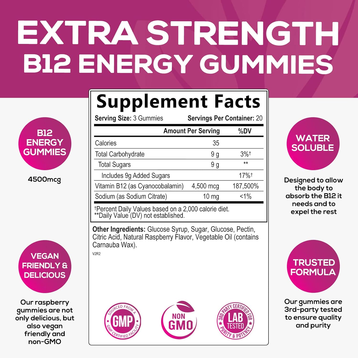 High Potency Energy Supplement: Each serving of our Vitamin B12 Energy Gummies delivers 4500 mcg of B-12 vitamins, to support energy10Nervous System & Cognitive Support: Our gummy energy chews, packed with B12 Vitamins, are essential support for nervous system, cognitive function, and overall health10Vegan & Caffeine-Free: Our B12 energy gummies provide a natural, jitter-free energy boost; Powerful vegan-friendly vitamin b12 suitable for women, men, and kids10Trusted Premium Formula: Gummy energy supplements are non-GMO, gluten-free, and manufactured under strict cGMP guidelines; third-party tested for quality and purity10B12 Vitamin Energy Gummies Supplement: 4500 mcg b-12 b 12 from natures nutrition made vitamina adults vit vegan best gummy for women men child kids nature mg chewable complex release berry flavor 1000 1000mcg 1000mg 2500 2500mcg 3000 3000mcg 500 5000 5000mcg 500mcg 4500mcg pills tablets softgels drops gomitas mujer chewables chews vitamins extra strength natural support bears booster brain caffeine capsules daily fatigue focus green gummy natural pills release runners running sports sugar super1010