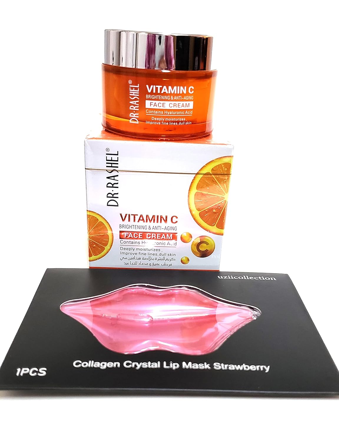 Vitamin C Face Cream - Hyaluronic Acid , Anti Aging And Collagen Moisturizer - 1.76 Oz + 1 Pcs Of Collagen Crystal Lip Mask Strawberry