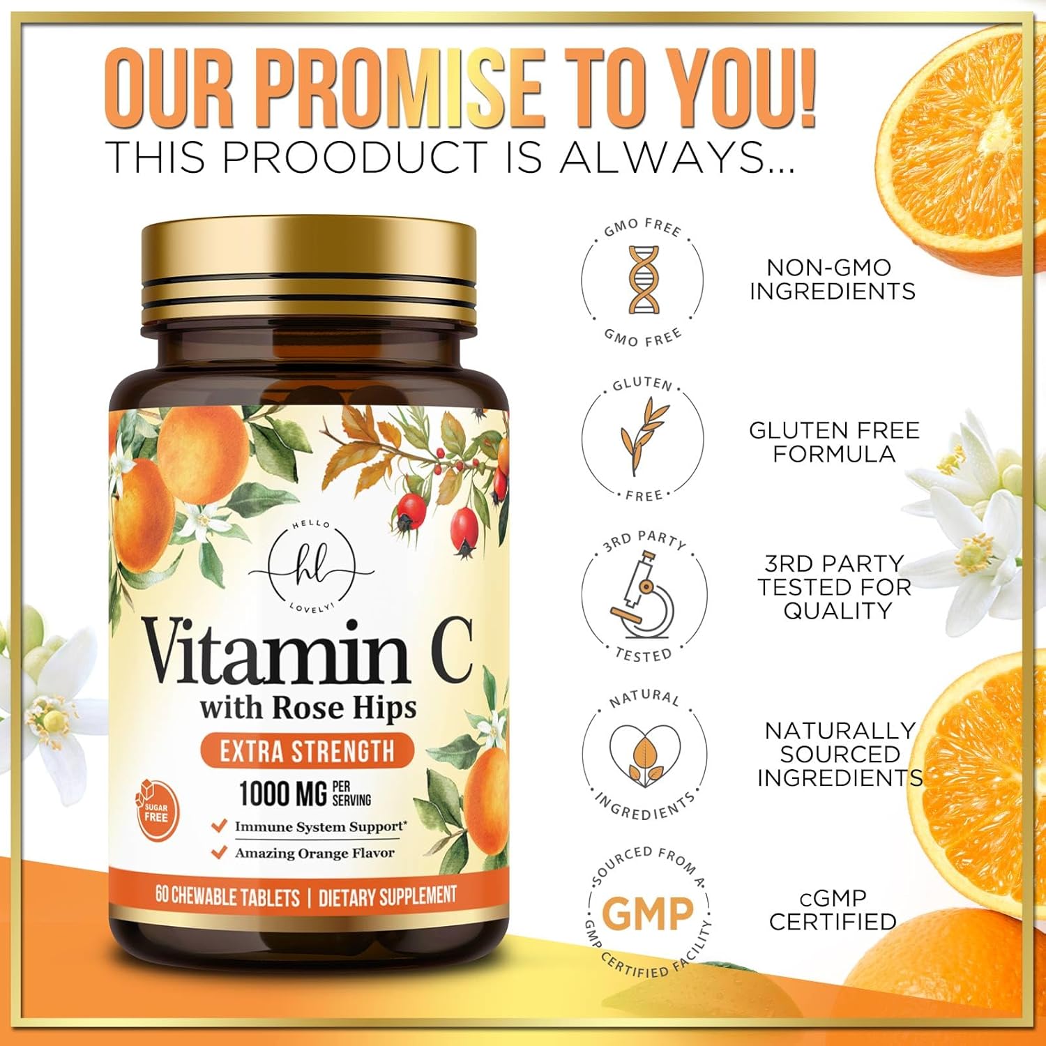 About this item POWERFUL IMMUNE SUPPORT WITH VITAMIN C 1000mg: Each serving provides vitamin c 1000mg to support your immune system; This vitamin c supplement is perfect for adults looking for extra daily support using a trusted source of vitamin c WITH ROSE HIPS, BIOFLAVONOIDS & MORE: Boosted with rose hips and bioflavonoids to improve absorption, our vitamin c capsules also offer antioxidant benefits; Whether you call it vitamin c, vitamina c, or even vitaminc, this formula works hard to support your wellness every day TASTY CHEWABLE VITAMIN C PILLS: Sugar Free; These vitamin c pills are easy to take and completely sugar free; Ideal for anyone who prefers chewable vitamin c over traditional vitamin c 1000mg capsules, including vitamin c for adults TRUSTED, HIGH QUALITY FORMULA YOU CAN TRUST: Hello Lovely offers premium viramin c in a natural formula; With no artificial additives, this extra strength vitamina c 1000mg option delivers everything you expect from top quality vitamin c capsules VITAMIN C SUPPLEMENT 1000mg: Best extra strength vit c chewable capsules with rose hips body caplets citamin coated ct day adults dietary gummies gummy hello lovely liposomal immune support natures pills powder sugar supplements supply tablets viramin bitamin c vitamina vitaminas vitaminc vitamine vitamins 100 1000 mg 10000mg 4 500 500mg vitimin vitman with women zero zinc See more product details,POWERFUL IMMUNE SUPPORT WITH VITAMIN C 1000mg: Each serving provides vitamin c 1000mg to support your immune system; This vitamin c supplement is perfect for adults looking for extra daily support using a trusted source of vitamin c,WITH ROSE HIPS, BIOFLAVONOIDS & MORE: Boosted with rose hips and bioflavonoids to improve absorption, our vitamin c capsules also offer antioxidant benefits; Whether you call it vitamin c, vitamina c, or even vitaminc, this formula works hard to support your wellness every day,TASTY CHEWABLE VITAMIN C PILLS: Sugar Free; These vitamin c pills are easy to take and completely sugar free; Ideal for anyone who prefers chewable vitamin c over traditional vitamin c 1000mg capsules, including vitamin c for adults,TRUSTED, HIGH QUALITY FORMULA YOU CAN TRUST: Hello Lovely offers premium viramin c in a natural formula; With no artificial additives, this extra strength vitamina c 1000mg option delivers everything you expect from top quality vitamin c capsules,VITAMIN C SUPPLEMENT 1000mg: Best extra strength vit c chewable capsules with rose hips body caplets citamin coated ct day adults dietary gummies gummy hello lovely liposomal immune support natures pills powder sugar supplements supply tablets viramin bitamin c vitamina vitaminas vitaminc vitamine vitamins 100 1000 mg 10000mg 4 500 500mg vitimin vitman with women zero zinc