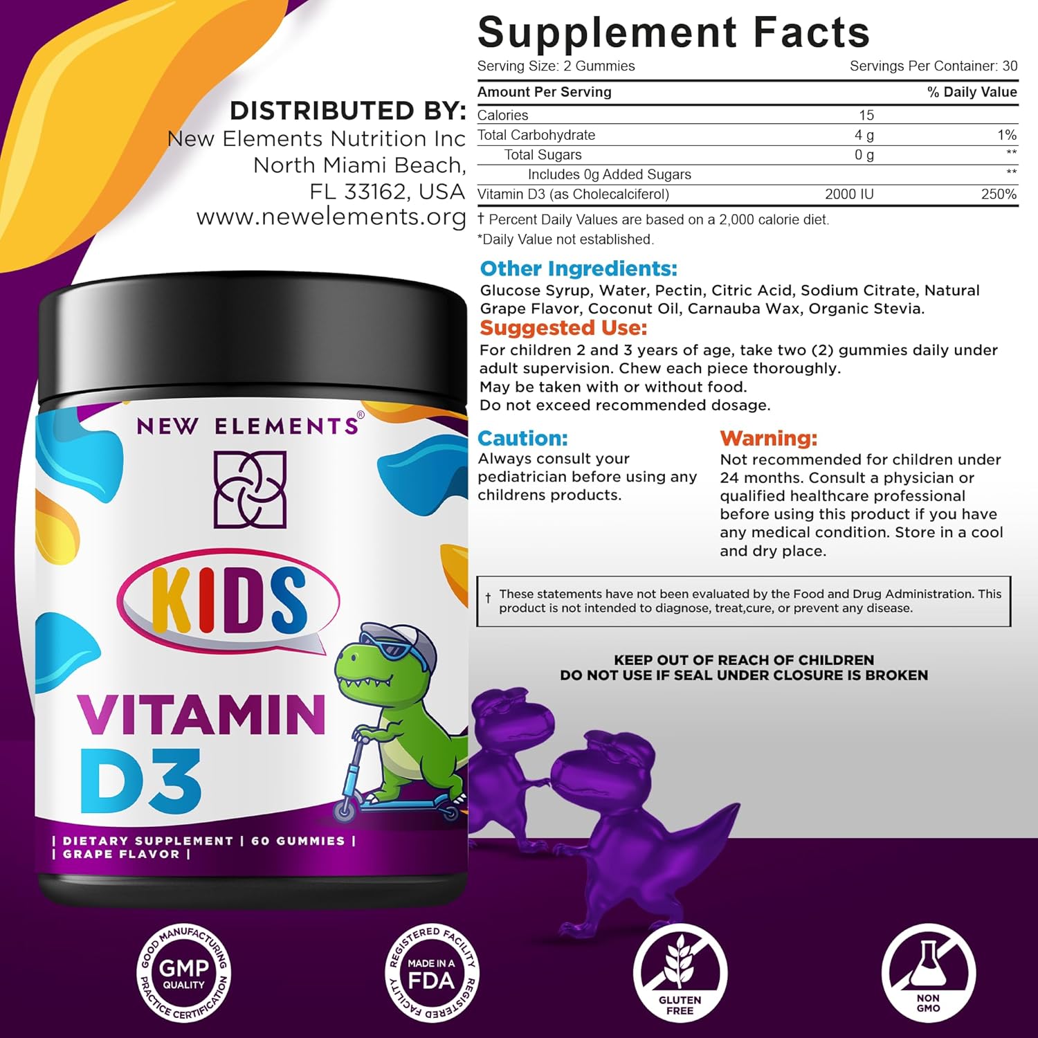 ???????????????? ???? ?? ??????????: Packed with 2000 IU of Vitamin D3, these sugar-free gummies are your child's daily beam of sunshine! Designed to support strong bones, a cheerful mood, and robust immunity, they're grape-flavored and made with vegan, non-GMO, gluten-free ingredients