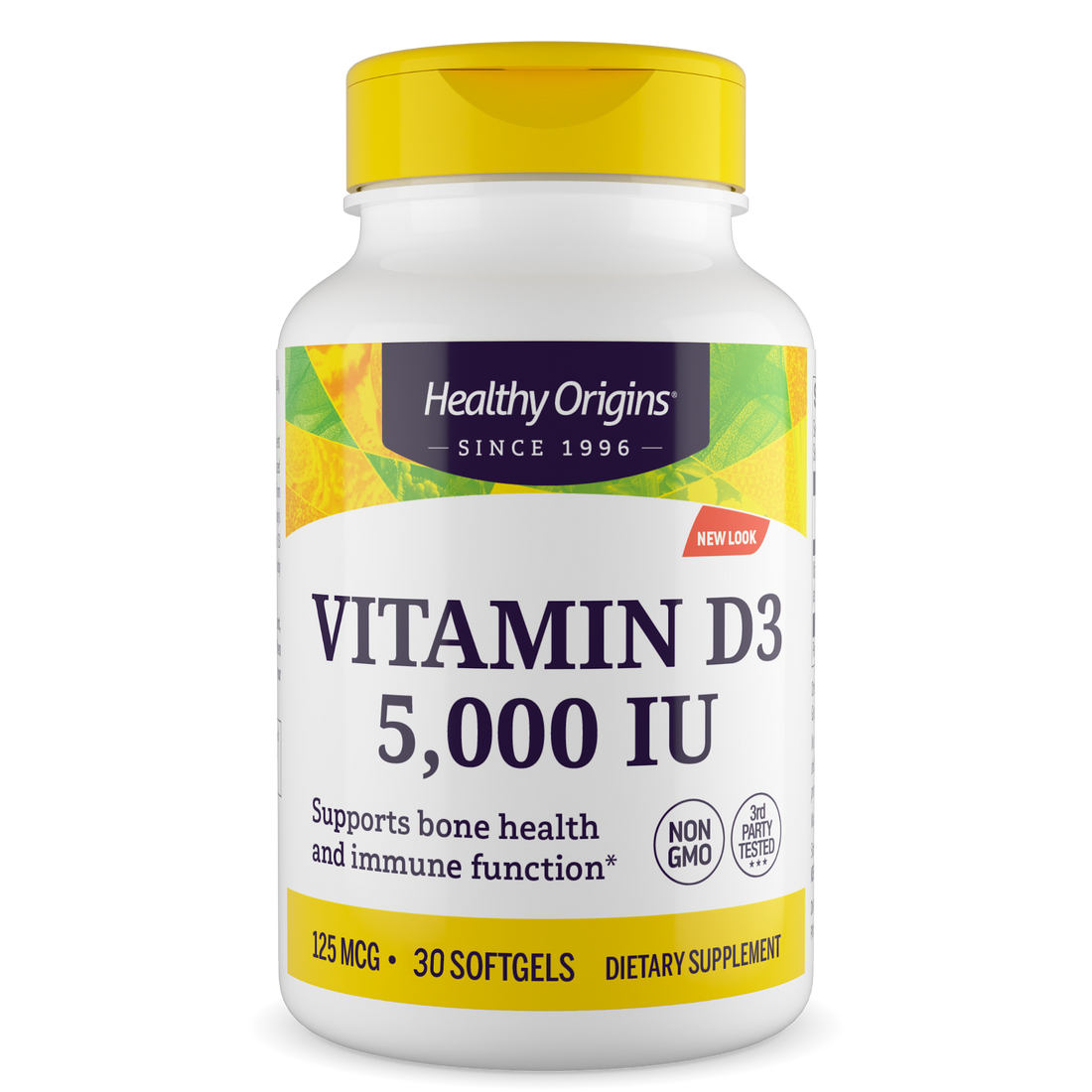 Healthy Origins® Vitamin D3 5,000 is key nutrient manufactured in a highly absorbable liquid softgel form. Vitamin D3 is synthesized in the body from sunlight and only a small amount can be obtained from food. The winter season and most sunblock products inhibit the body’s ability to produce optimal levels of Vitamin D. As a result, Vitamin D3 supplementation becomes even more necessary to ensure your body receives an adequate supply.