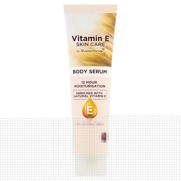 Product Information:A Lightweight Body Serum That Deeply Hydrates And Replenishes The Skin. Smooths, Softens, And Enhances Skin Radiance With Long-Lasting Moisture,Features:Superdrug Vitamin E Body Serum Sinks Into Skin Easily With A Lightweight Non-Greasy Finish, Whilst Providing 24 Hour Moisturisation. Enriched With Natural Vitamin E, Shea Butter And Cocoa Butter, Skin Is Left Feeling Instantly Hydrated, Smooth And Soft,Warning Or Restrictions:Avoid Direct Contact With The Eyes. If Contact Occurs, Rinse Thoroughly With Clean Water. Do Not Use On Broken Or Irritated Skin, Discontinue Use If Irritation Occurs,Product Specification:Aqua, Propylene Glycol, Dimethicone, Saccharide Isomerate, Glycerin, Hydroxyethyl Acrylate/Sodium Acryloyldimethyl Taurate Copolymer, Phenoxyethanol, Isohexadecane, Polyacrylate Crosspolymer-6, Tocopheryl Acetate, Dimethicone Crosspolymer, Parfum, Butyrospermum Parkii Butter, Theobroma Cacao Seed Butter, Polysorbate 60, Disodium Edta, Ethylhexylglycerin, Triethanolamine, Peg-35 Castor Oil, Sorbitan Isostearate, Aesculus Hippocastanum Seed Extract, Alcohol Denat., Glycine Soja Oil, Tocopherol, Citric Acid, Sodium Citrate, Polysorbate 20, Calcium Pantothenate, Inositol, Linoleic Acid, Retinyl Palmitate, Biotin, Citronellol, Coumarin, Hexyl Cinnamal, Limonene, Linalool,Product Uses:Superdrug Vitamin E Body Serum Sinks Into Skin Easily With A Lightweight Non-Greasy Finish, Whilst Providing 24 Hour Moisturisation. Enriched With Natural Vitamin E, Shea Butter And Cocoa Butter, Skin Is Left Feeling Instantly Hydrated, Smooth And Soft
