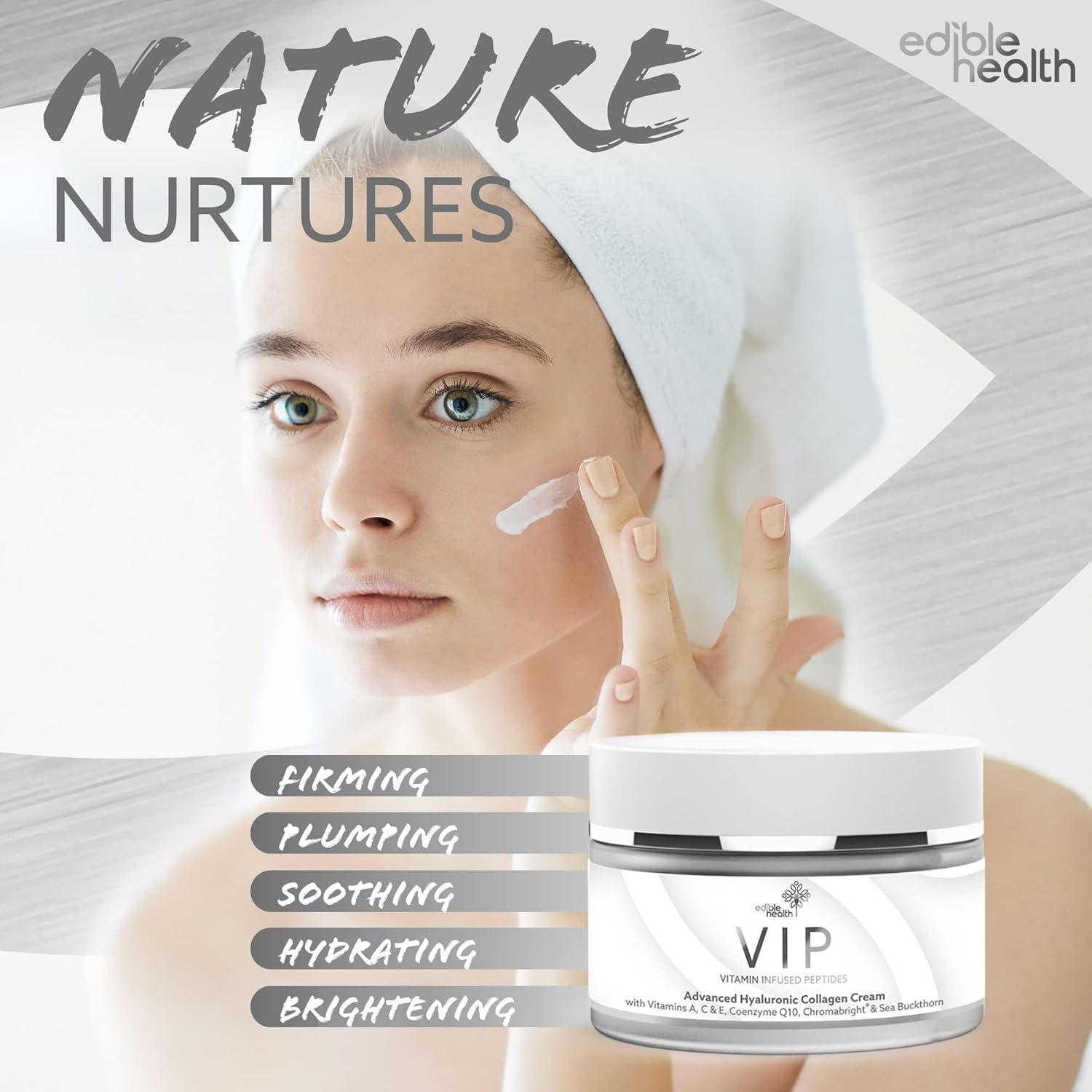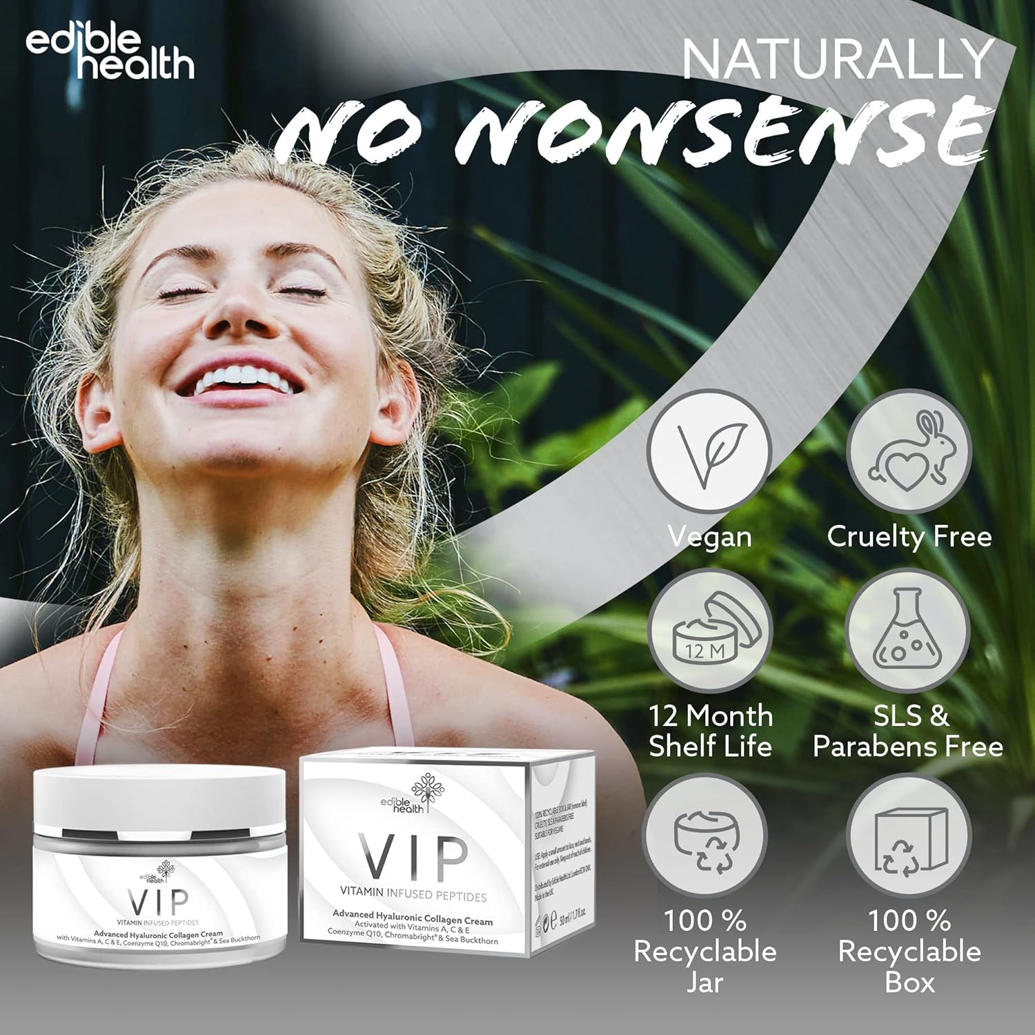 Vitamin Infused Peptides. Advanced Anti-Ageing Collagen Cream + Hyaluronic Acid. Day & Night Cream. Brightening & Hydrating Vegan Collagen Moisturiser. Vitamin A, C, + E. 50Ml