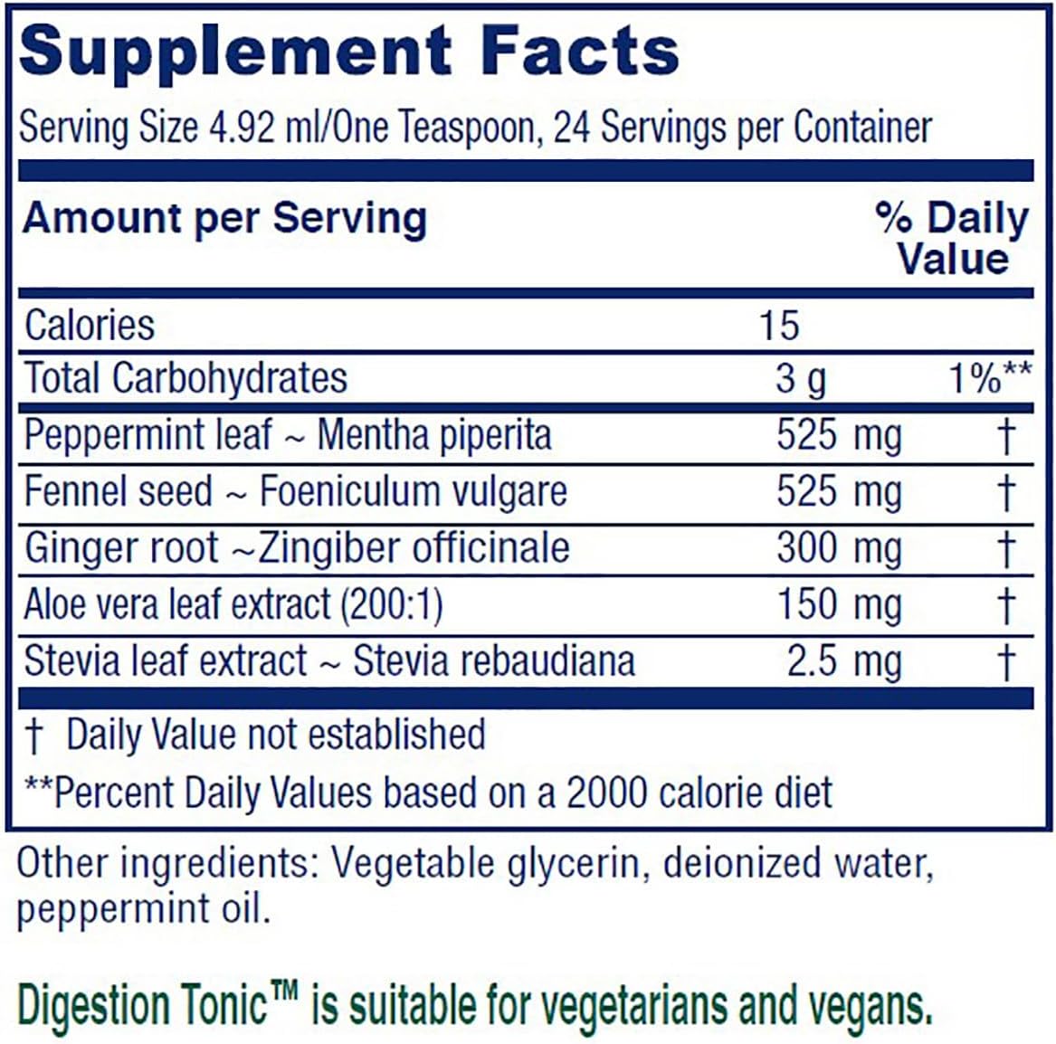 HIGH QUALITY INGREDIENTS & CLINICALLY DEVELOPED - Digestion Tonic is made of the highest quality herbs. The blend contains organic Peppermint essential oil & leaf extract, Fennel seed, Ginger root and Aloe Vera leaf which are research backed ingredients that help promote healthy digestion and gut health! Digestion Tonic is Gluten free, Sugar free, NON-GMO, 100% Vegan & 100% Vegetarian and contains no common allergens!