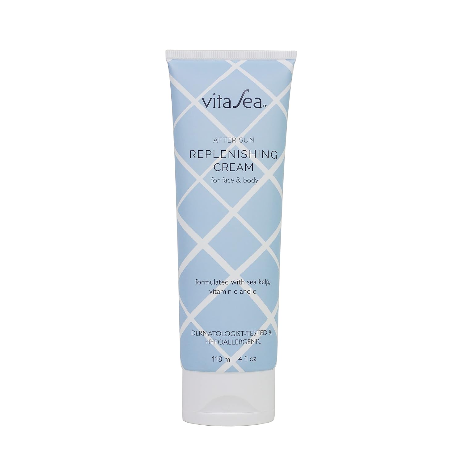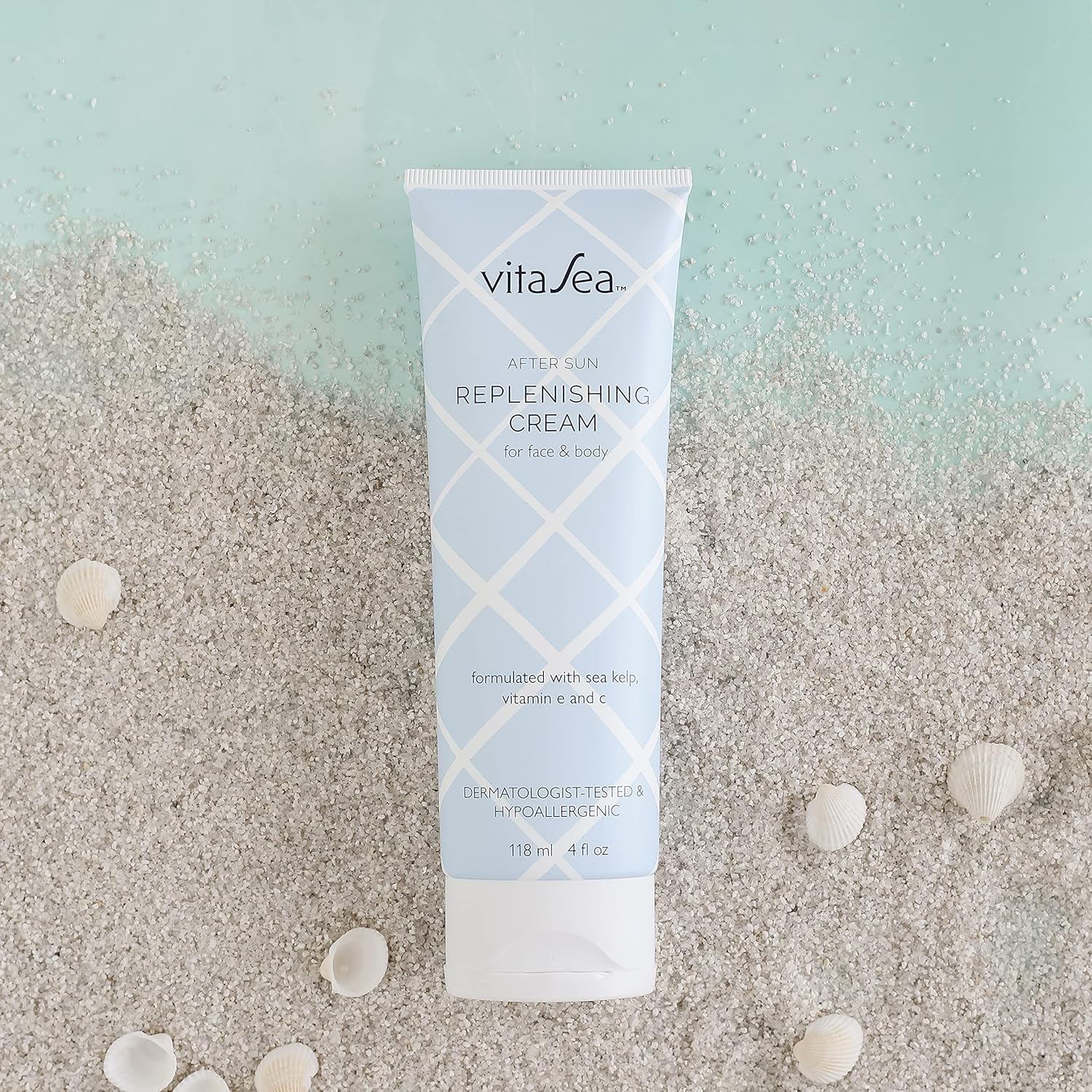 Vitasea After Sun Replenishing Cream For Face And Body, Refresh, Hydrate & Soothe Sun Exposed Skin, Fast-Absorbing Vegan After Sun Care, Formulated With Sea Kelp, Vitamin E & C, 4 Fl Oz