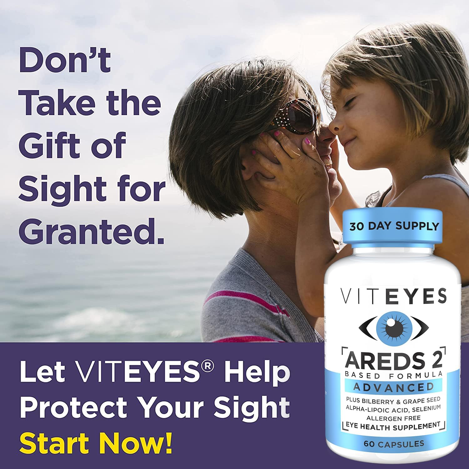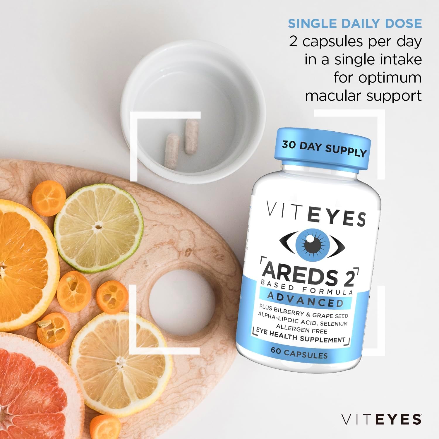 Viteyes Areds 2 Advanced Macular Support With Bilberry, Grapeseed, Floraglo Lutein, Selenium, Natural Vitamin E, Allergen Free, Eye Vitamins For Vision Protection, 60 Count