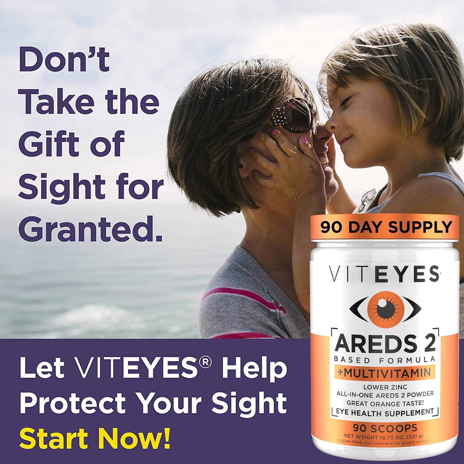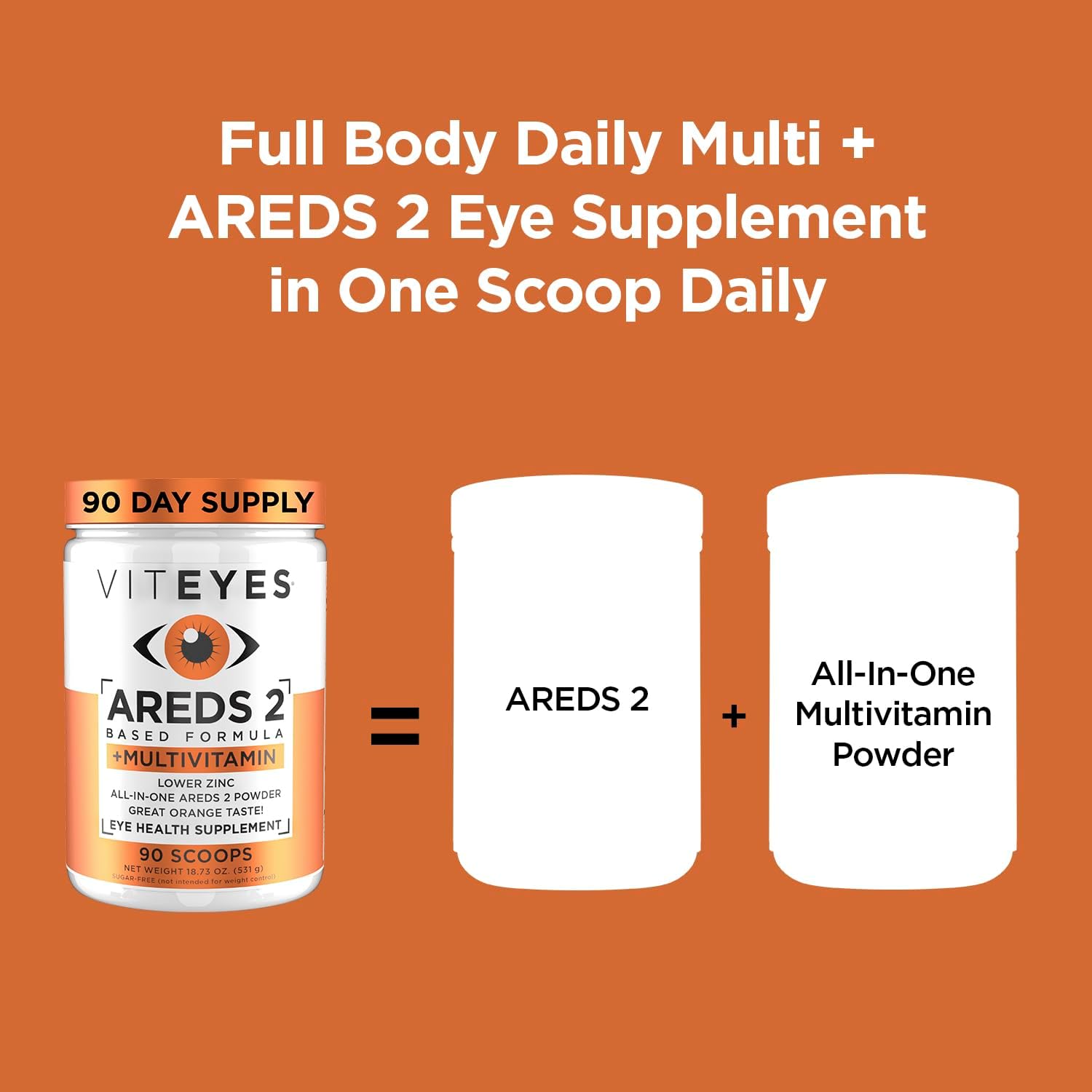 Viteyes Areds 2 Powder + Multivitamin All-In-One, Macular Protection, Alternative To Areds 2 Chewables, No Pills, Lutein & Zeaxanthin, Areds 2 Eye Vitamins Drink, Natural Orange Flavor, 90 Scoops