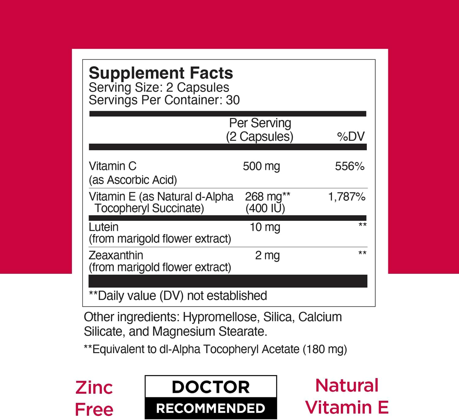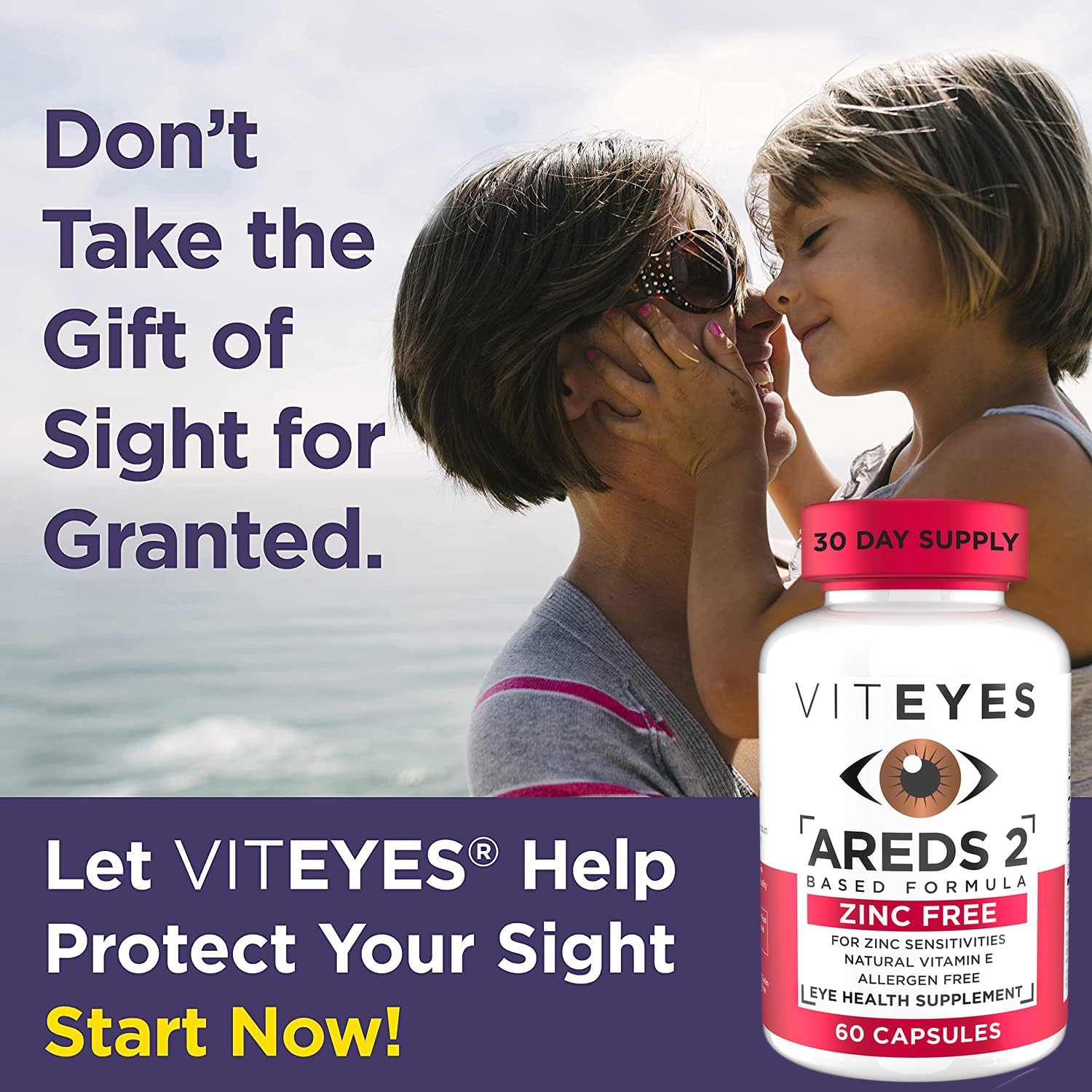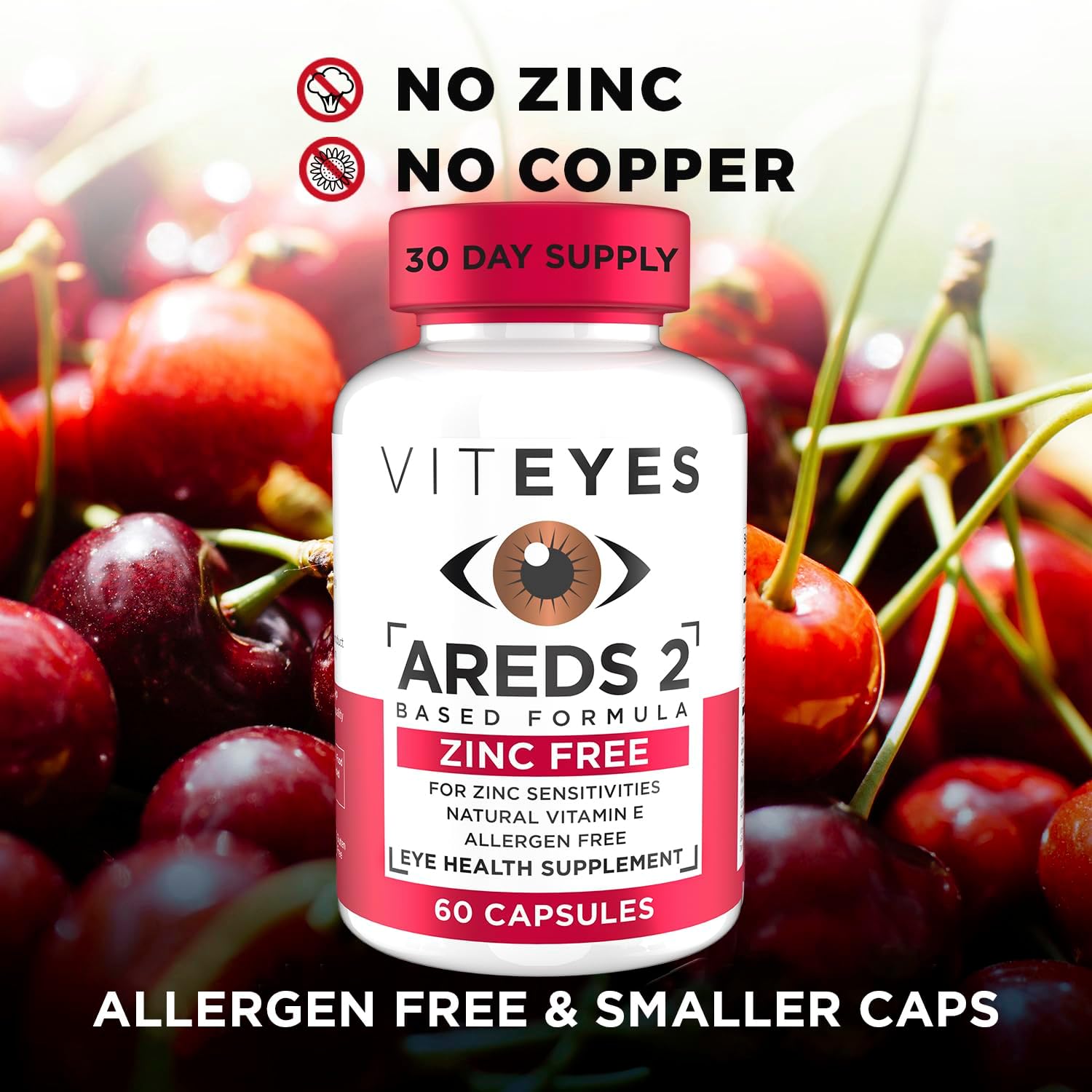 Viteyes Areds 2 Zinc Free Macular Support, Natural Allergen Free Capsules With Vitamin E, Vitamin C, Lutein & Zeaxanthin, No Zinc, No Copper, Eye Doctor Trusted