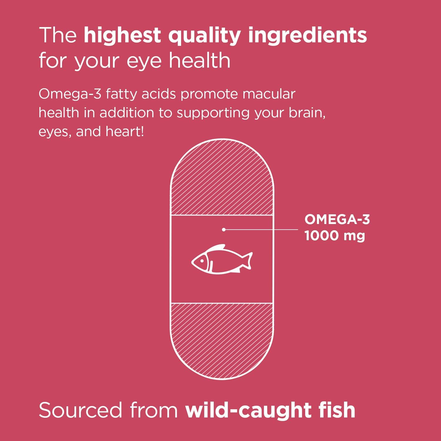 BULLET POINTS  :   1 >  OMEGA-3 SUPPORT - Premium supplement formulated with powerful and protective Omega-3 Fatty Acids; Sourced from wild caught fish, these softgels naturally promote macular health
