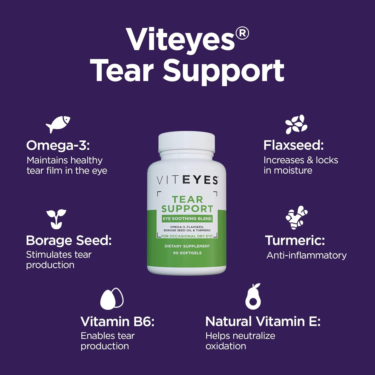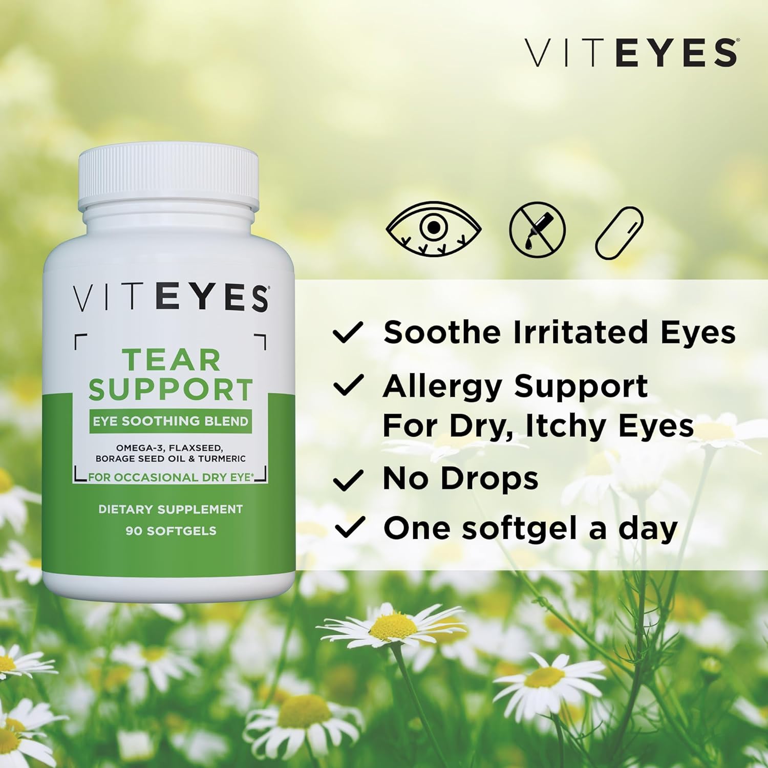 Viteyes Tear Support Eye Soothing Blend, Occasional Dry Eye Supplement, No Eye Drops, Redness Relief, Eye Vitamin, Allergy Support for Itchy Eyes, Omega-3 Fish Oil, 90 Softgels
