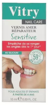 Vitry Nail Care Sensitive Repair Bitter Varnish 10Ml Is A Repairing Bitter Varnish That Combines 2 Actions : Its Enhanced Bitterness Stops The Urge To Bite One'S Nails And Suck One'S Thumb. Its Exclusive Formula Enriched With Bio-Sourced Active Ingredients Helps To Repair And Strengthen Damaged Nails. The Varnish Becomes Completely Invisible On The Nail After Application. Tested Under Pediatric And Dermatological Control. Made In France