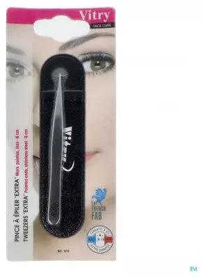 Vitry Tweezers Pointed Jaws Stainless Steel 8 Cm Is A Pair Of Tweezers Distinguished By Its Elongated, Wide Handles, Offering Better Grip And Greater Flexibility For Optimum Precision. Ideal For Splinters Or Eyebrow Tweezing, Its Micro-Serrated Tips Effectively Remove Even The Finest, Most Resistant Hairs. Equipped With A Case And Made From Stainless Steel Gilded With Fine Gold, It Offers Quality, Durability And Resistance, Making It A Reliable And Practical Beauty Accessory. Made In France