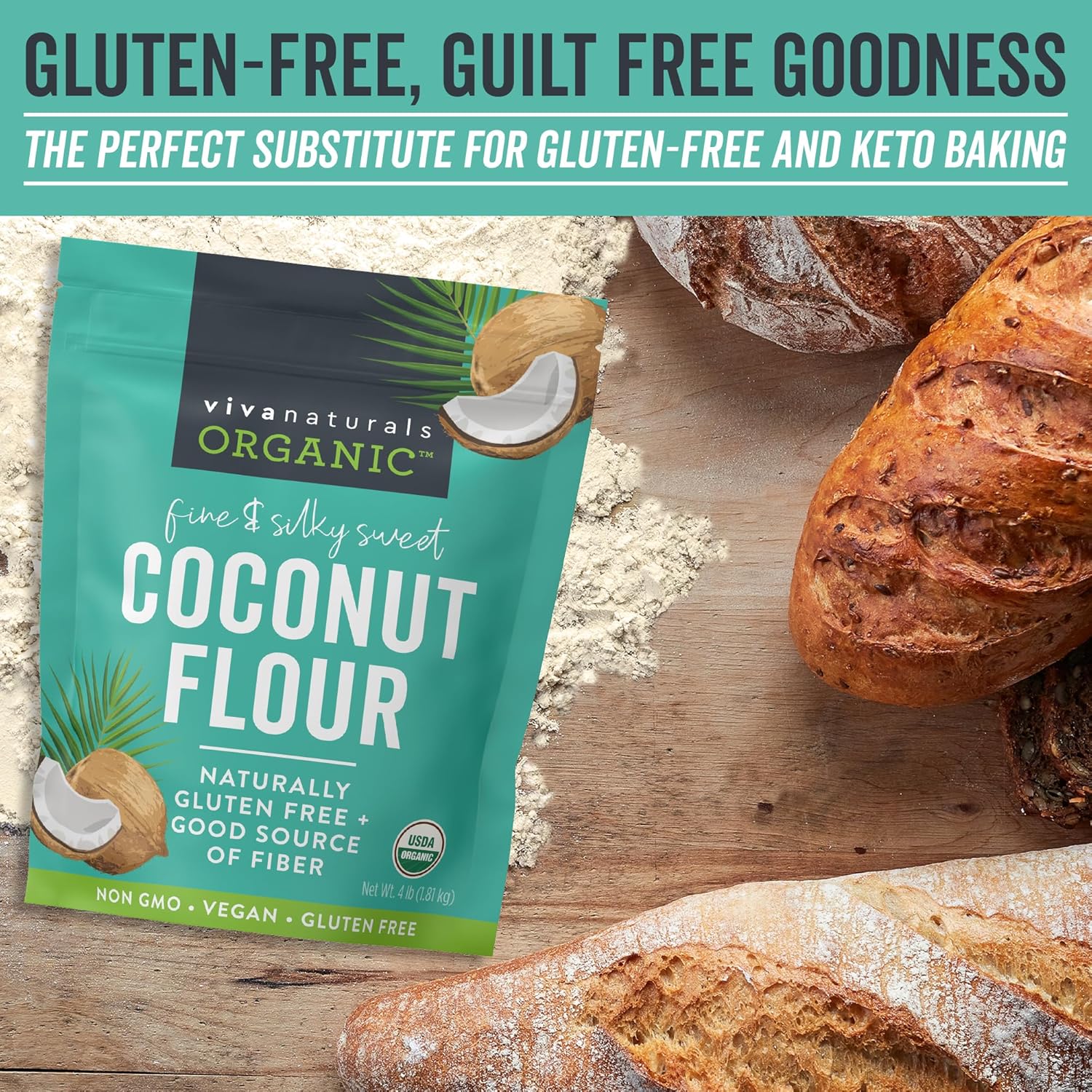 Viva Naturals Organic Coconut Flour (4 Lbs) - Gluten Free Flour Substitute For Keto, Paleo And Vegan Baking, Low Fat And Fiber-Rich Coconut Baking Flour, Non-Gmo, Unbleached And Unrefined, 1.81 Kg