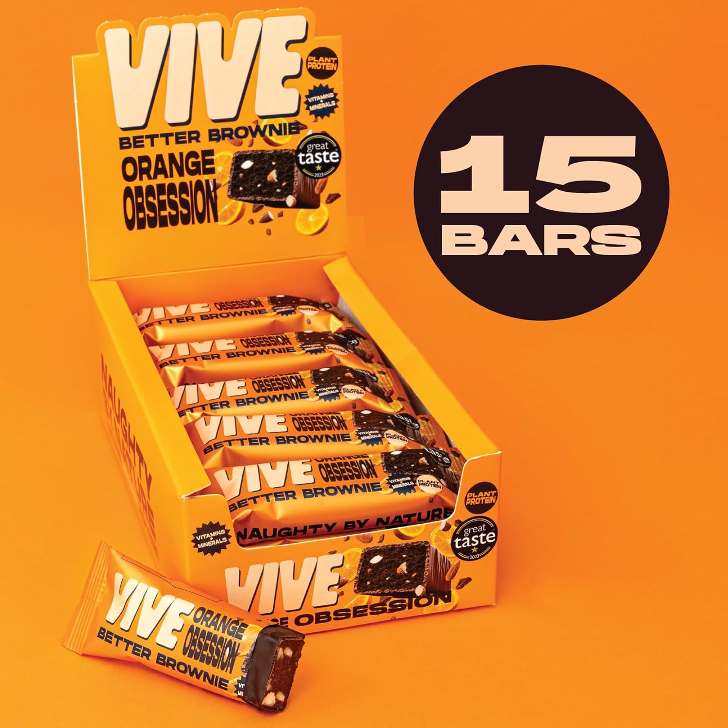Vive Better Brownie Chocolate Orange With Immunity Vitamins - Low Calorie Vegan Treat - Healthy Protein Snack - Pack Of 15