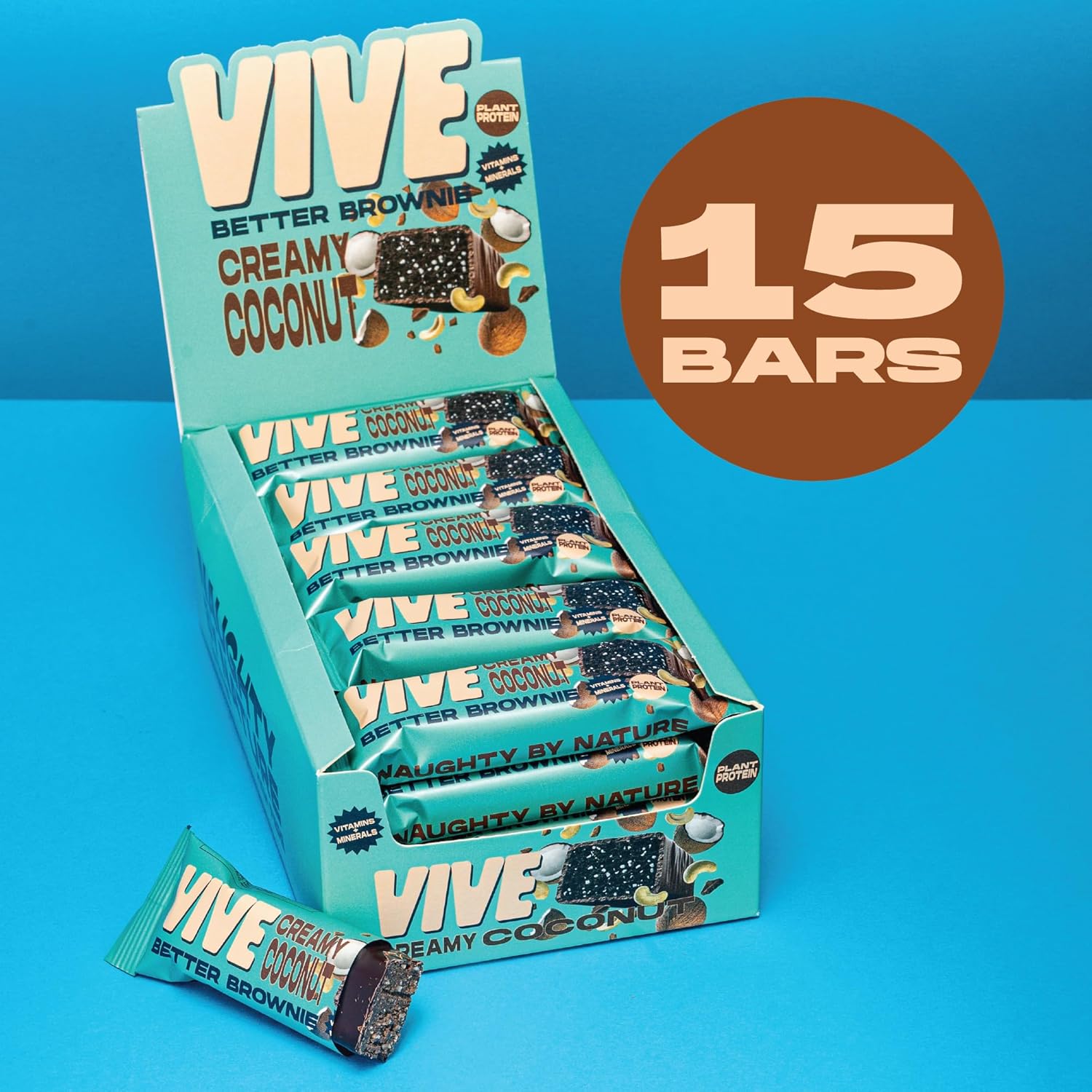 Vive Better Brownie Creamy Coconut With Immunity Vitamins - Low Calorie Vegan Treat - Healthy Protein Snack - Pack Of 15