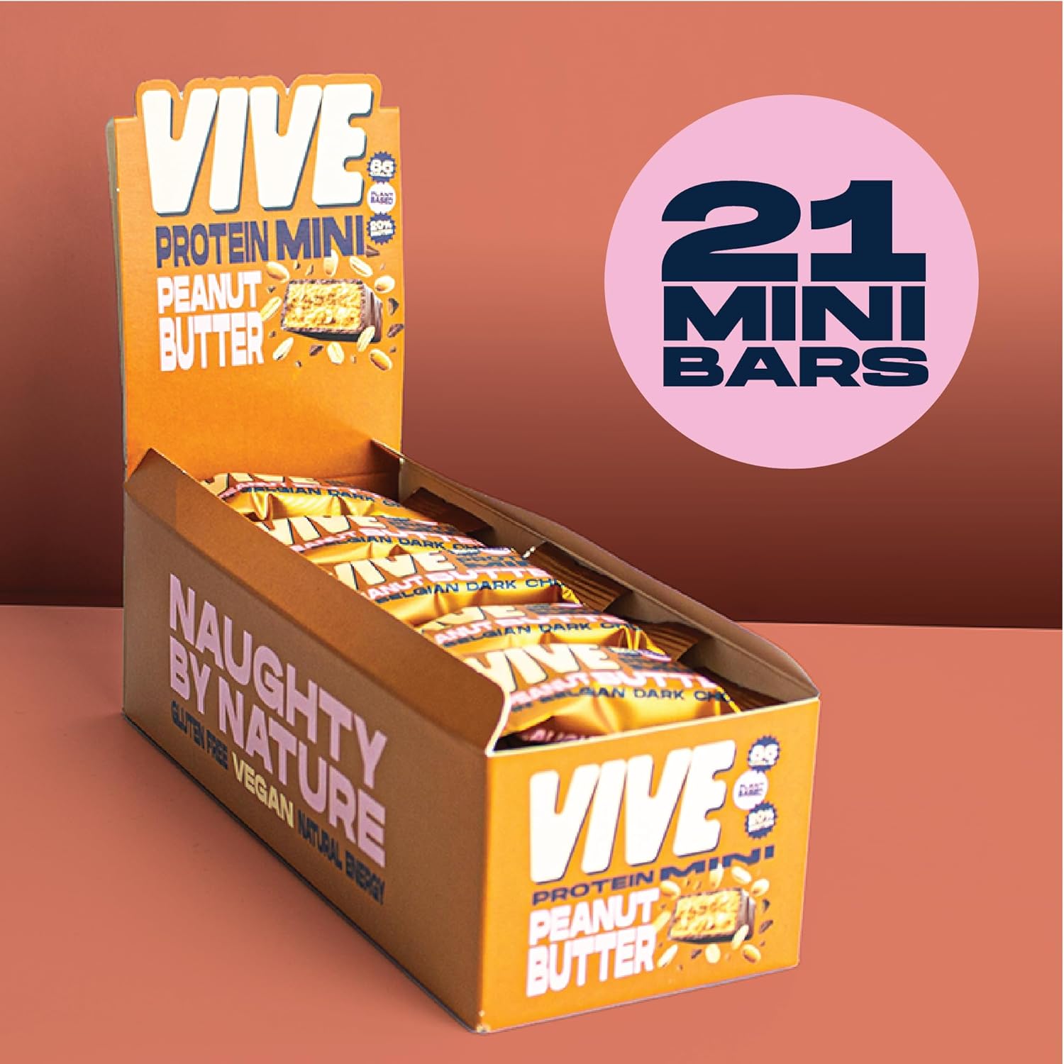 Vive Dark Chocolate Coated Peanut Butter Flavour Protein Bites - Vegan - High Fibre Protein Mini Bars - Pack Of 21