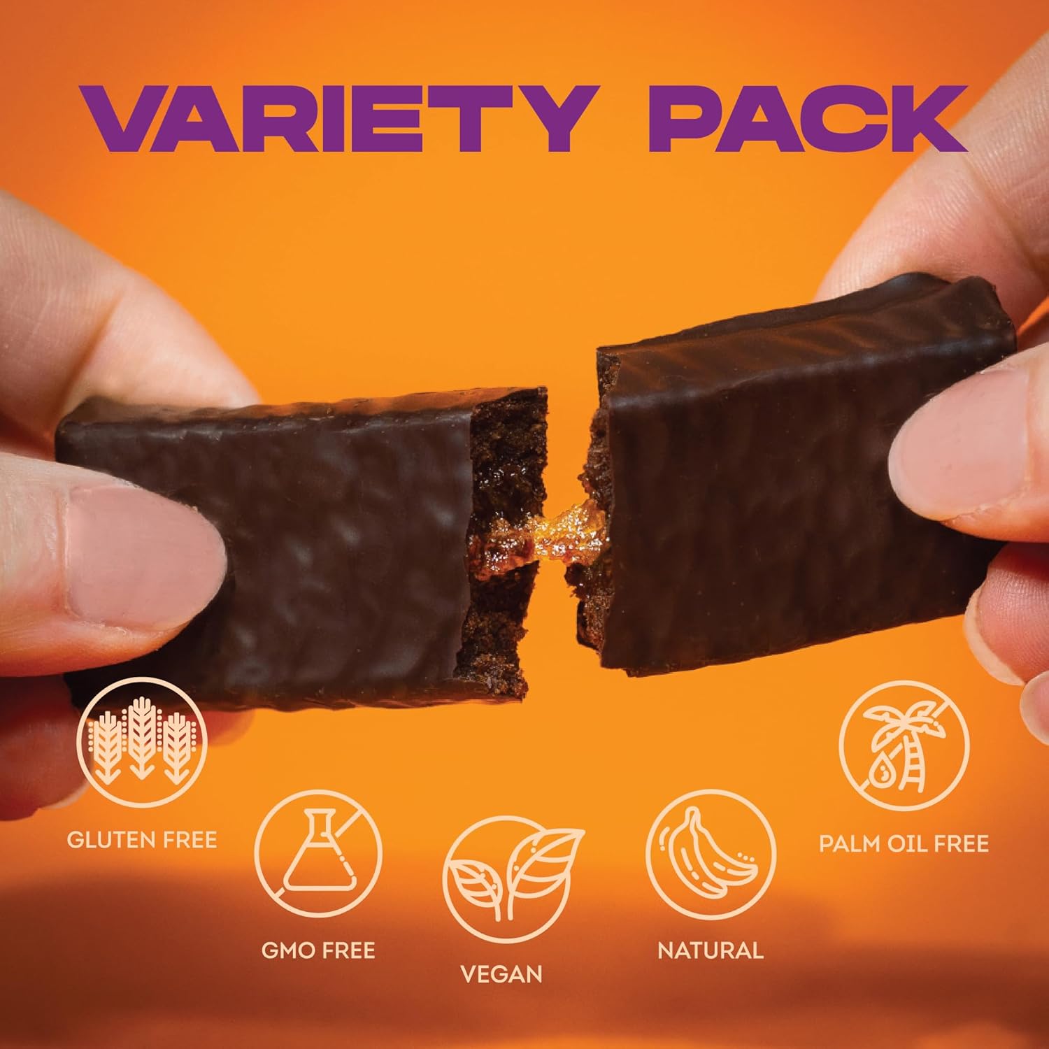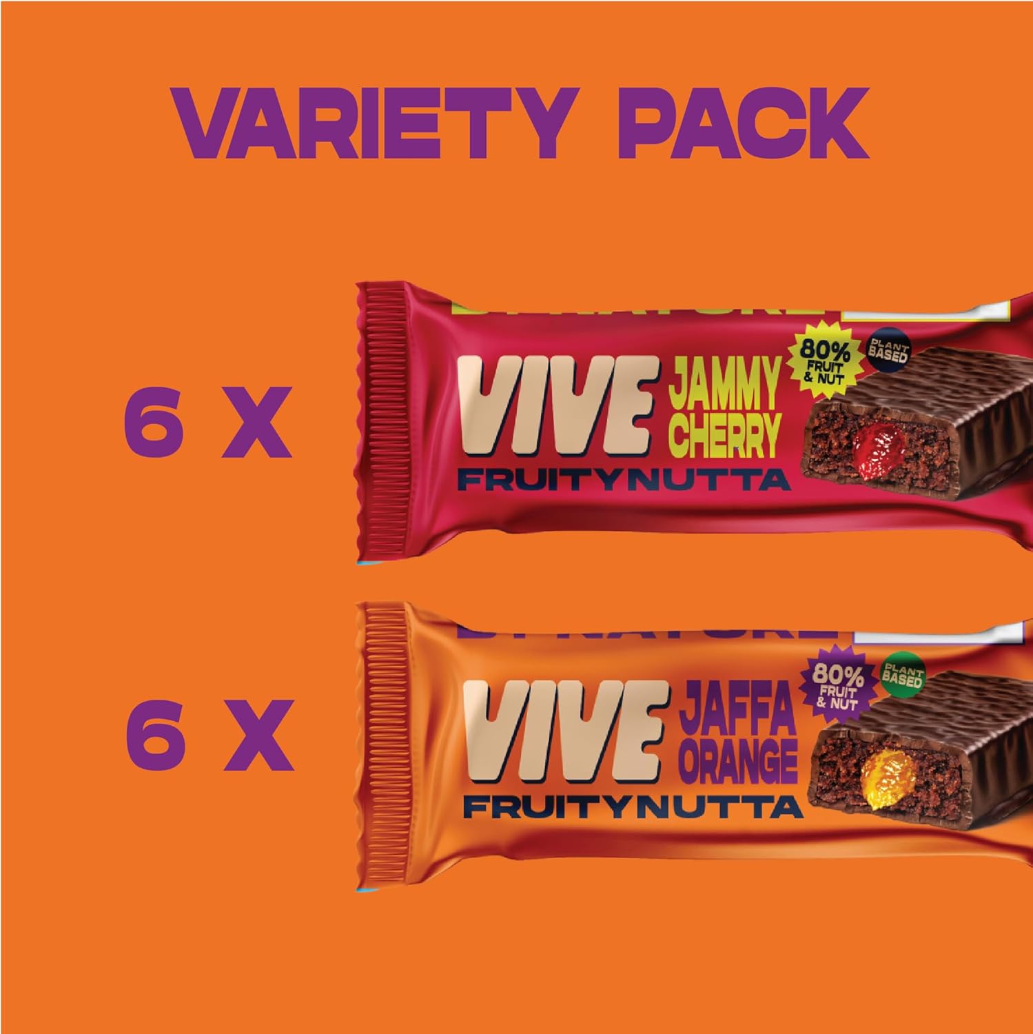 Vive Fruity Nutta Mixed Box – Variety Of Fruit Jam Filled Vegan Snack Bars – 80% Fruit & Nut, Belgian Chocolate Coated, High Fibre, Gluten-Free – Pack Of 12 Healthy Bars For On-The-Go Snacking