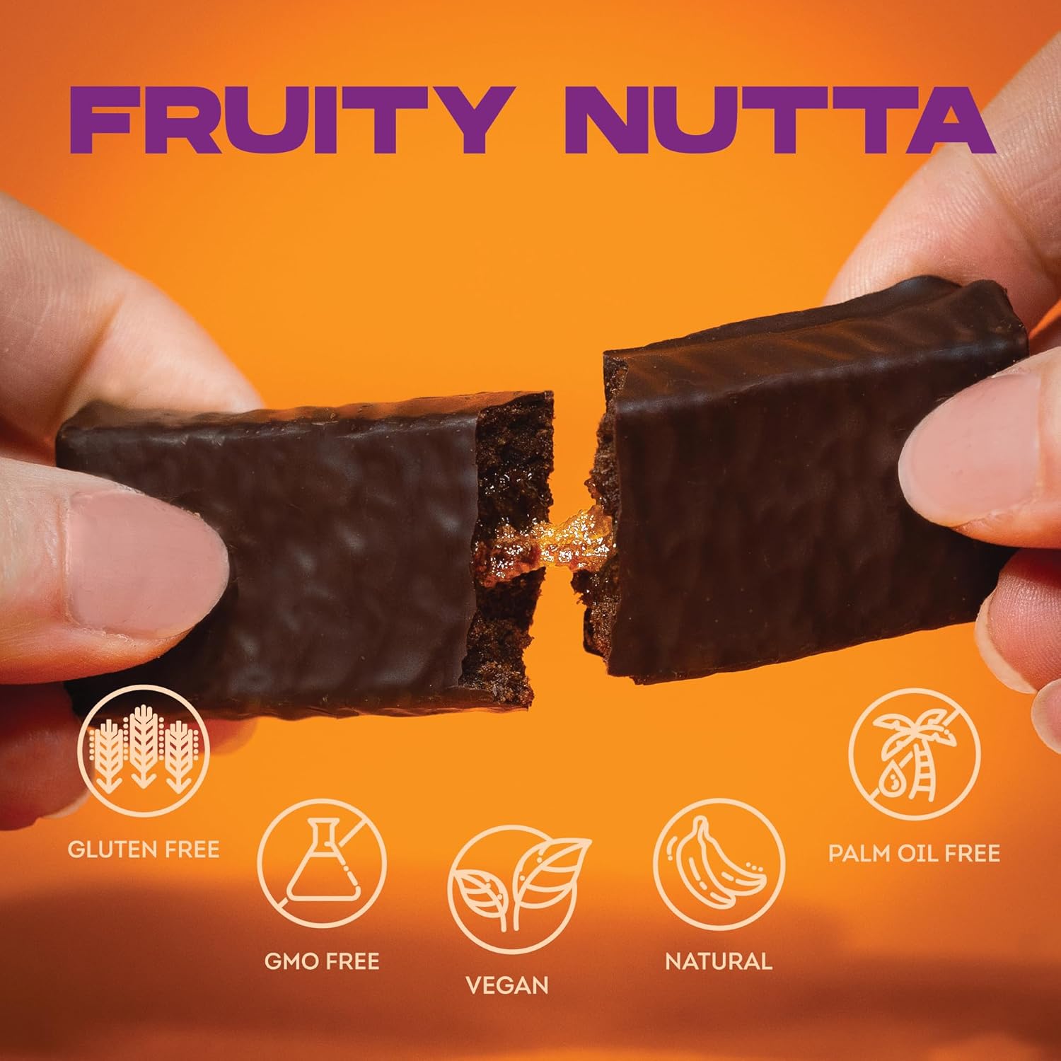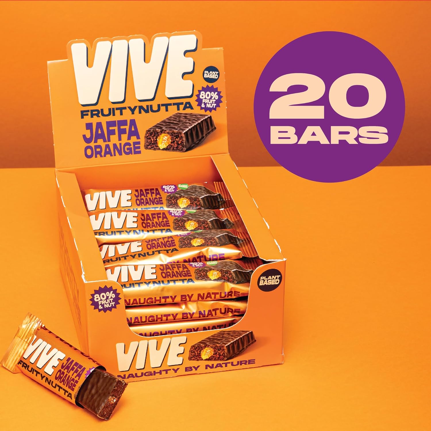 Vive Jammy Jaffa Orange Fruity Nutta Bars – Vegan Fruit & Nut Snack With Real Fruit Jam Filling – 80% Fruit & Nut, Belgian Chocolate Coated, High Fibre, Gluten-Free – Pack Of 20 Healthy Snack Bars