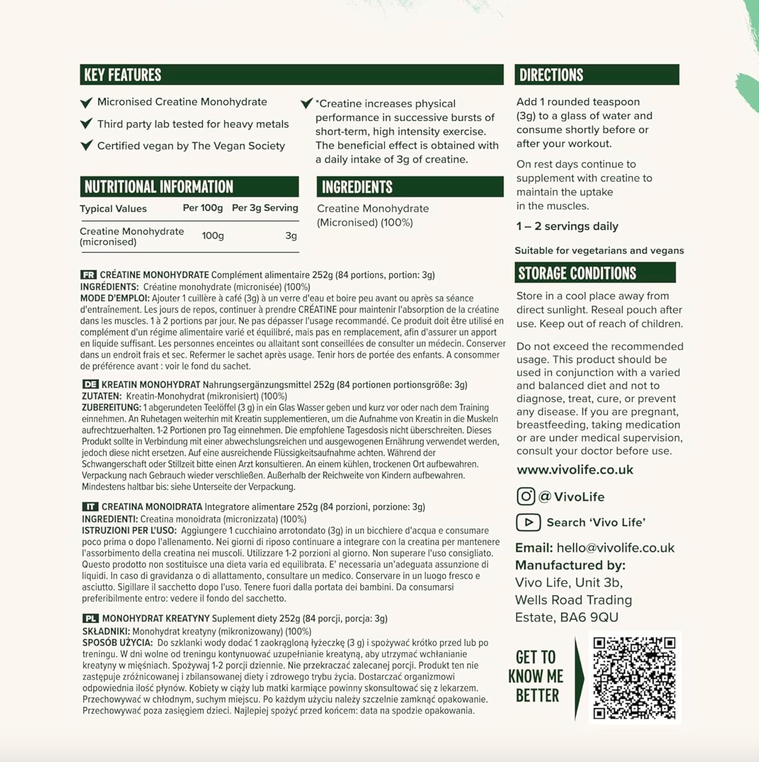 Buy Vivo Life - Creatine Monohydrate Powder Micronised - Vegan, Unflavoured (8.8 oz, 84 Servings) on Amazon.com FREE SHIPPING on qualified orders