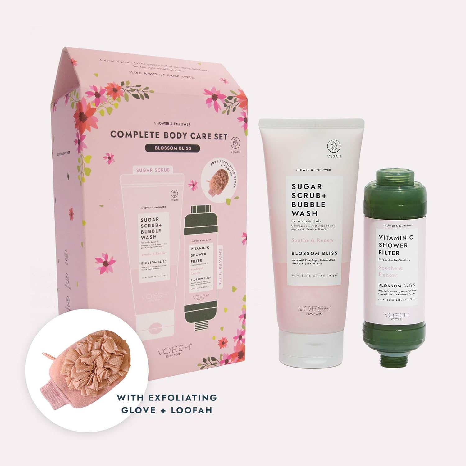 Voesh Shower + Empower Set- Shower Products, Sugar Scrub, Body Wash, Body Scrub, Vegan Beauty, Nourishing And Hydrating Skincare, At Home Spa