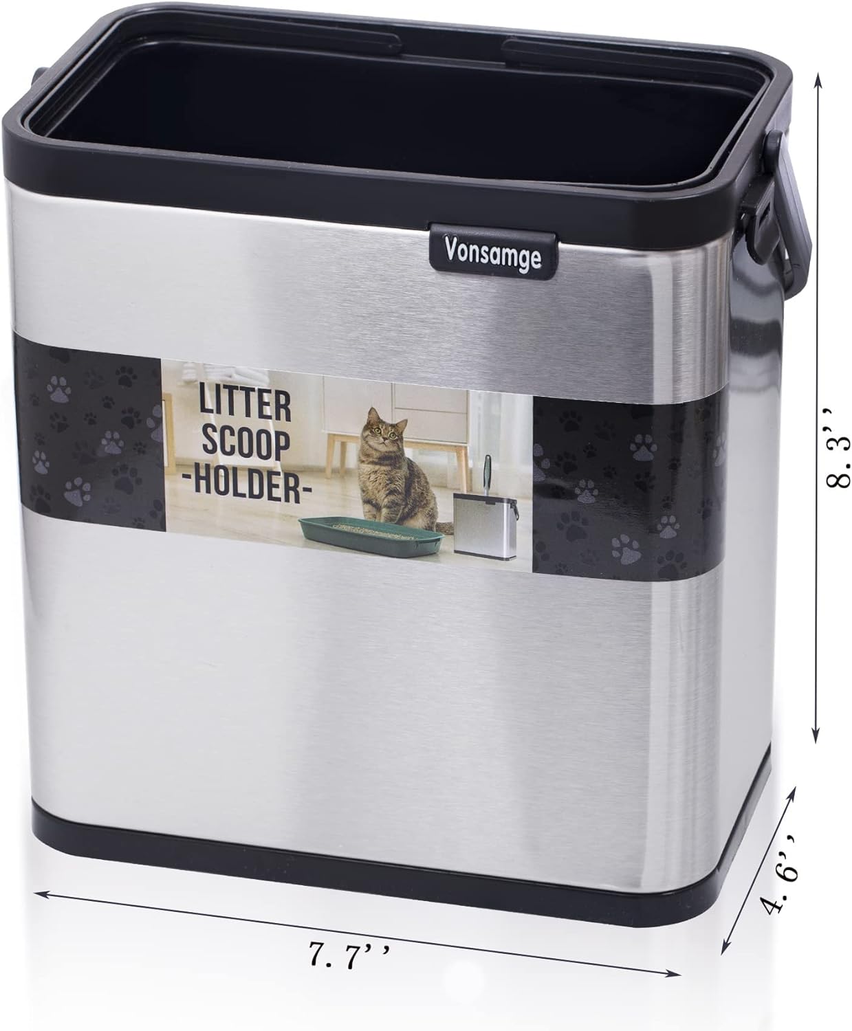 Vonsamge Universal Cat Litter Scoop Holder, Stainless Steel Small Portable Cat Litter Scooper Holder Trash Container
