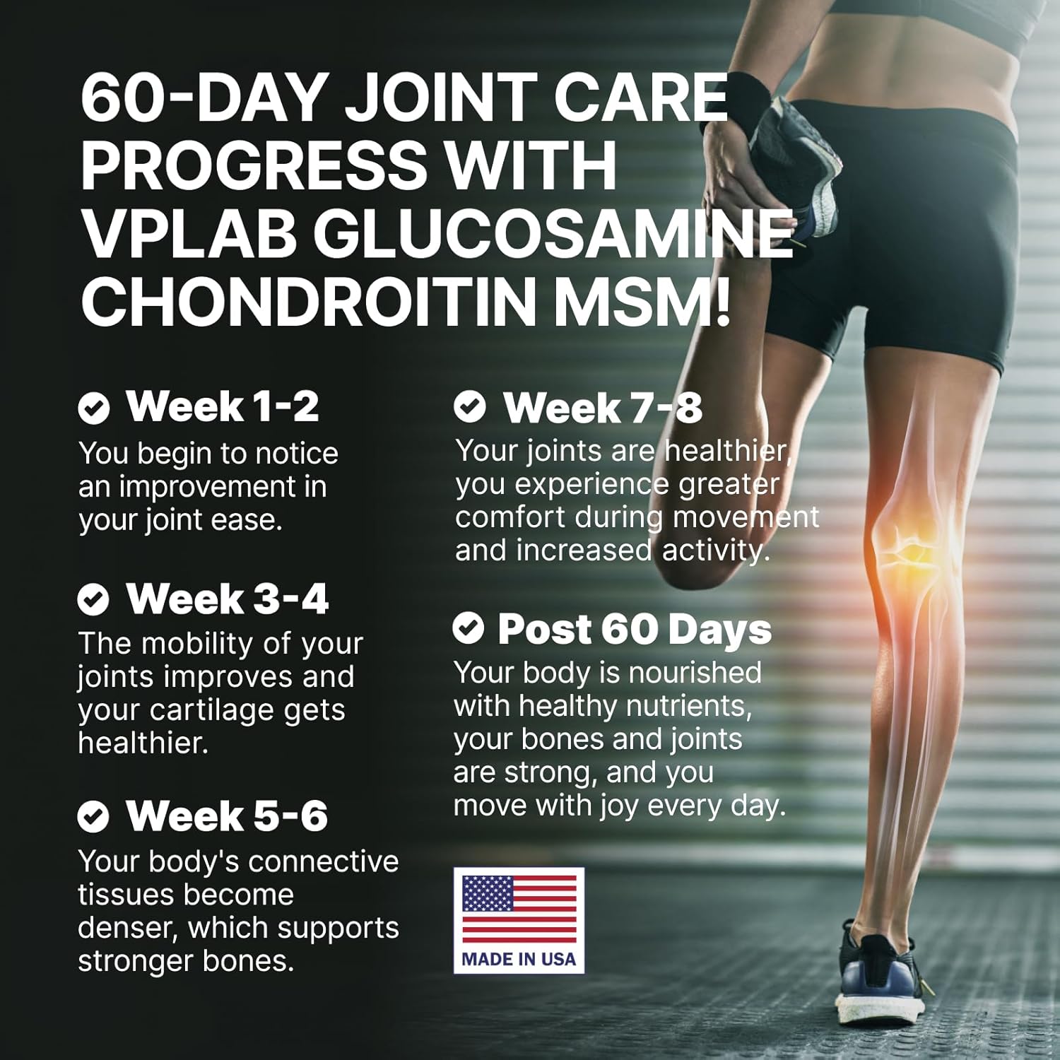 Vplab Glucosamine Chondroitin Msm Complex - Triple Strength Formula Supplement For Joint Support & Mobility - Glucosamine Sulphate 2Kcl, Chondroitin Sulphate Sodium & Methylsulfonylmethane, 180