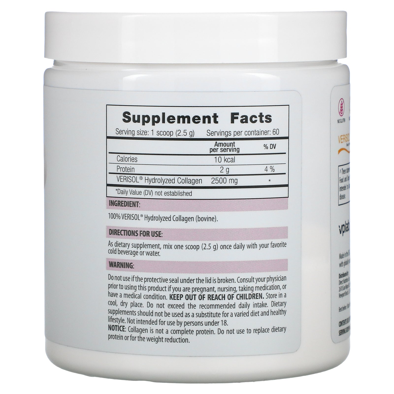 Vplab, Ultra Women'S Beauty Collagen Peptides, Unflavored, 2,500 Mg