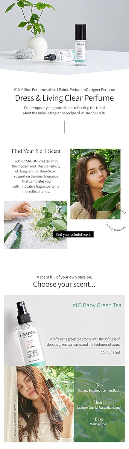 W.Dressroom No.03 Baby Green Tea Dress & Living Clear Perfume (2.36 Oz) – Fresh Scent For Clothes, Fabrics, Carpets & Rooms, Natural Odor Eliminator, Eco-Friendly, Water-Based