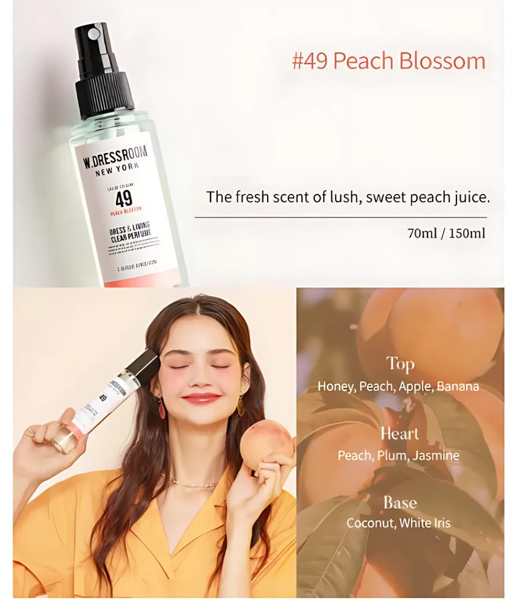 W.Dressroom No.49 Peach Blossom Dress & Living Clear Perfume (2.36 Oz) – Fresh Scent For Clothes, Fabrics, Carpets & Rooms, Natural Odor Eliminator, Eco-Friendly, Water-Based