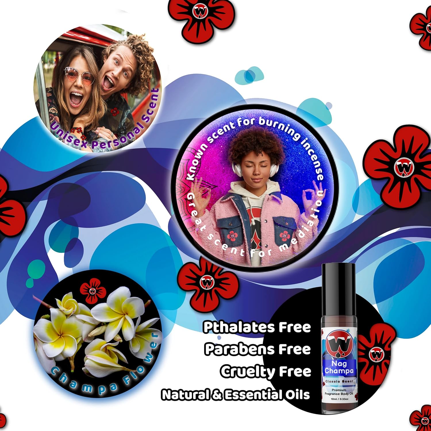Wagsmarket - Nag Champa Perfume Oil, From 0.33Oz Roll On To 4Oz Glass Bottle (1Oz Roll-On)
