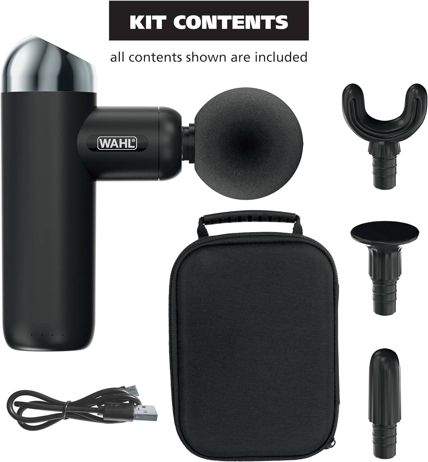 DESCRIPTION : WAHL Intense Relief Cordless Lithium Ion Therapeutic Mini Percussion Massage Gun with 4 Massage Heads and 6 Speeds to Relieve Deep Tissue Muscle Pain & Soreness β Model 3024569