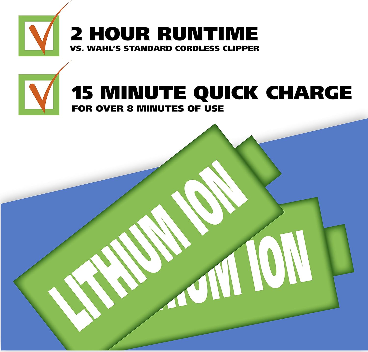 Product Description The Wahl Clipper Lithium Ion Pro Series Pet Clipper Is A Cordless, Rechargeable, Wireless Clipper. It Comes In Our 11-Piece Hair Trimmer, Razor, Shaving, And Haircutting Kit That Features 4 Colored Clipper Attachment Guards For Convenient And Goof-Proof Grooming Sessions Ranging From Short 1/8” To Long 1/2” Haircuts. Our 4 Guide Combs, Finishing Comb, Scissors, Power Cord, Oil & Cleaning Brush Are Included. These Clippers Feature Convenient Cord/Cordless Use Options With 120 Minutes Of Cordless Run Time. Long-Lasting Easy-To-Clean Stainless-Steel Precision Blades Enable No-Snag Cutting. This Kit Is Designed For Full Body Clippings Of All Breeds. The Lithium-Ion Power Gives You Un-Compromised Cutting Performance With Flexibility To Groom Anywhere. Wahl'S Quick Charge And Up To 2-Hour Run-Time Are Exactly What You Need. The Kit Comes With Color Guide Combs That Make It Easy To Find Your Desired Coat Length. Product In Packaging May Not Be Exactly The Same As Photo Due To Continuous Improvements To The Product. Note: We Test Our Trimmers For Cutting Performance Prior To Packaging With A Hygienic Fiber. We Do Our Best To Clean The Product To Remove Any Testing Particles, But It Is Possible A Few May Remain. They Are Not Hair And Can Be Simply Wiped Off. Set Contains: Accessories: Multi-Cut Lithium Ion Clipper. Blade Guard. Charger. Hard Storage Case. Styling Comb. Cleaning Brush. Blade Oil. Scissors: No. 1 - 1/8" Guide (3Mm). No. 2 - 1/4" Guide (6Mm). No. 3 - 3/8" Guide (10Mm). No. 4 - 1/2" Guide (13Mm)