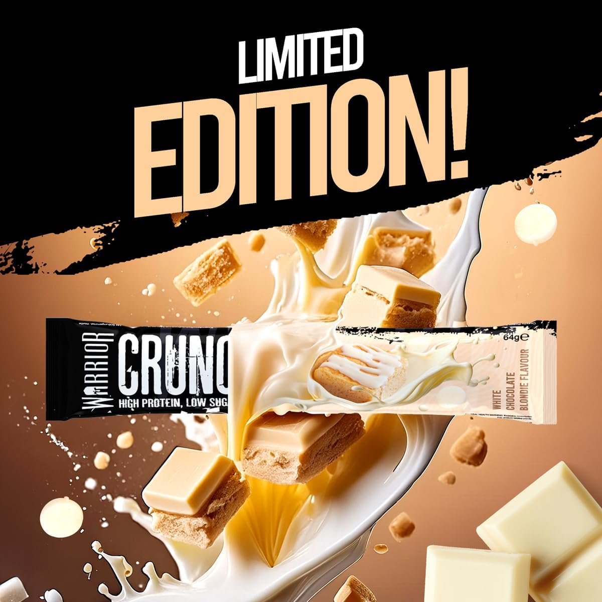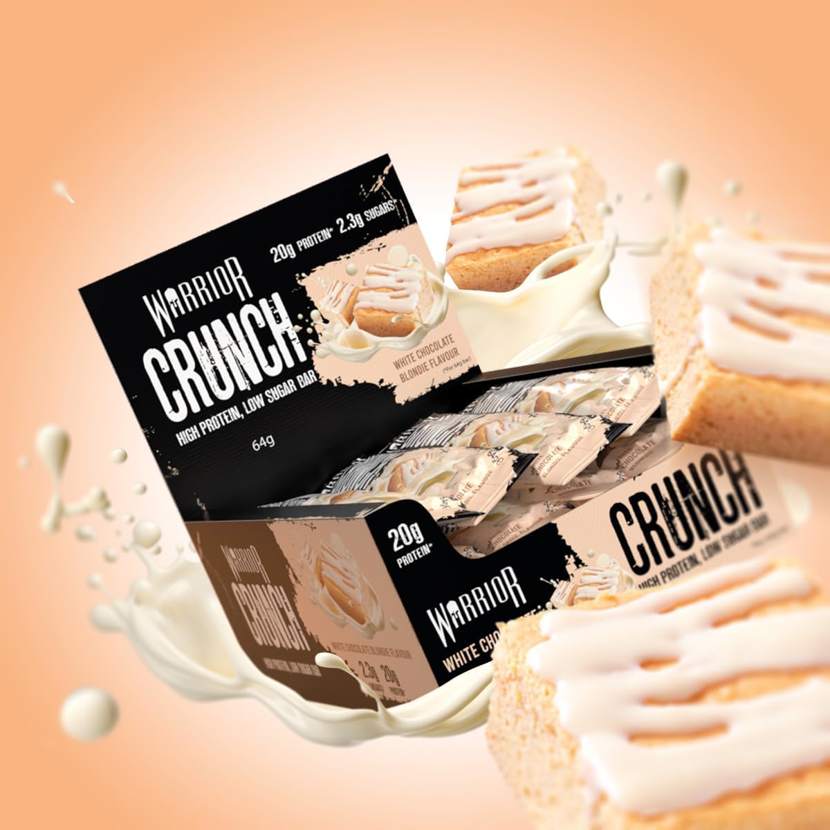 Warrior Crunch - High Protein Bars - 20G Protein Each Bar - Low Carb, Low Sugar Snack - 12 Pack X 64G (White Chocolate Blondie)